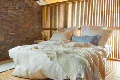 Die schlichte Eleganz reinen Leinens ist eine schöne Ergänzung für jedes Schlafzimmer. Ob glattgebügelt oder im natürlichen Zustand, Leinen steht Ihrem Bett immer gut.