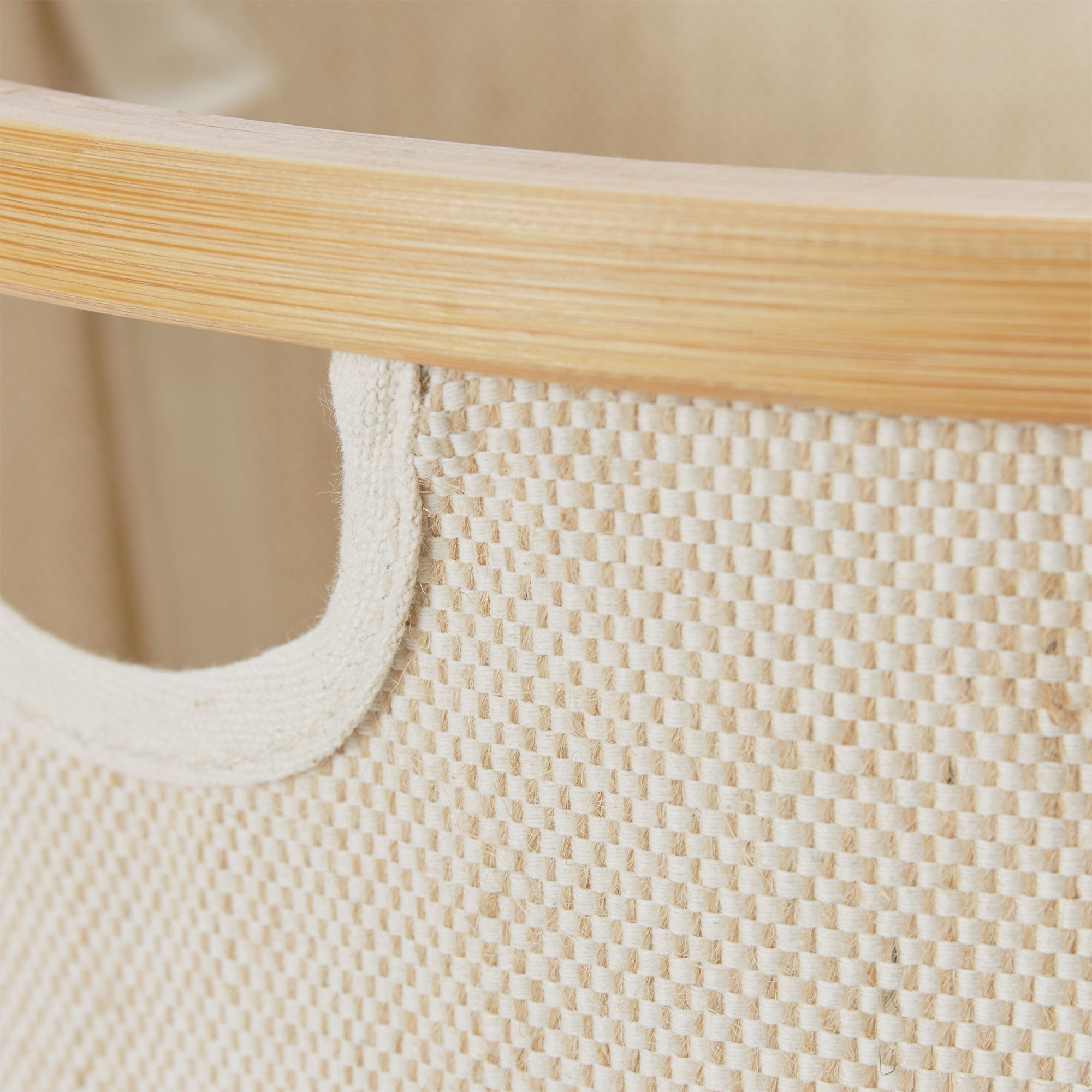 Aus einem robusten Leinen-Baumwoll-Mix in Leinwandbindung verwoben, begeistert unser Aufbewahrungskorb Champa mit natürlichem Aussehen. Ein Rahmen aus Bambus gibt den nötigen Halt. Der puristische Stil passt in jedes Zuhause, ganz gleich ob Schlaf-, Wohn- oder Kinderzimmer.