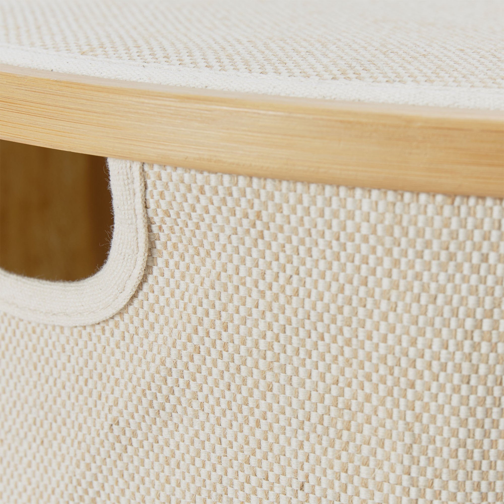 Aus einem robusten Leinen-Baumwoll-Mix in Leinwandbindung verwoben, begeistert unser Aufbewahrungskorb Champa mit natürlichem Aussehen. Ein Rahmen aus Bambus gibt den nötigen Halt. Der puristische Stil passt in jedes Zuhause, ganz gleich ob Schlaf-, Wohn- oder Kinderzimmer.