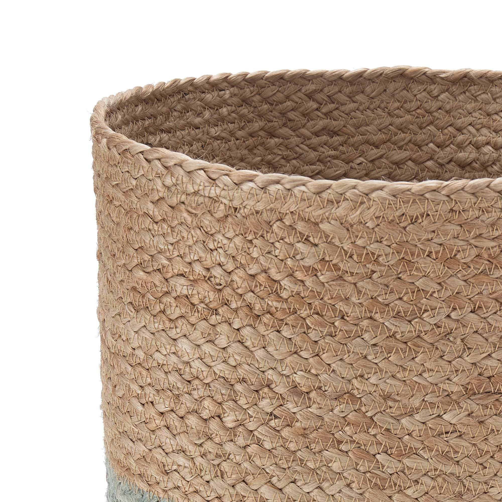Unser Dasai Korb wird in Indien aus 100% Jute von Hand geflochten. Der obere Teil des Korbs besteht aus schlichter, naturbelassener Jute, der untere Teil ist mit Farbe verziert, die dem Korb einen besonderen Touch gibt. Unser Dasai Korb eignet sich nicht nur zur Aufbewahrung für Handtücher, Accessoires & Co., sondern kann auch als stilvoller Übertopf verwendet werden.