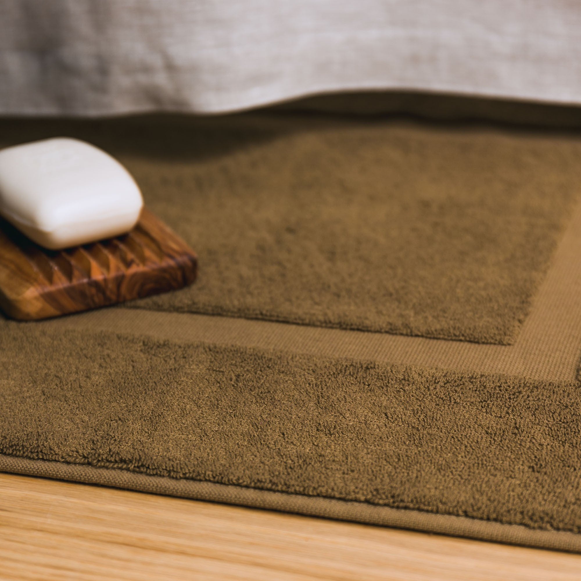 Aus bester ägyptischer Baumwolle in weichem Frottee verwoben ist unsere Badematte Penela nur eines der luxuriösen Bad-Accessoires der Kollektion Penela. Von unseren Partnern und erfahrenen Textil-Experten in Portugal gefertigt setzen das mittig abgesetztes Rechteck und die 3 cm breite Bordüre des Badvorlegers einen eleganten Akzent ihr Ihrem Badezimmer.