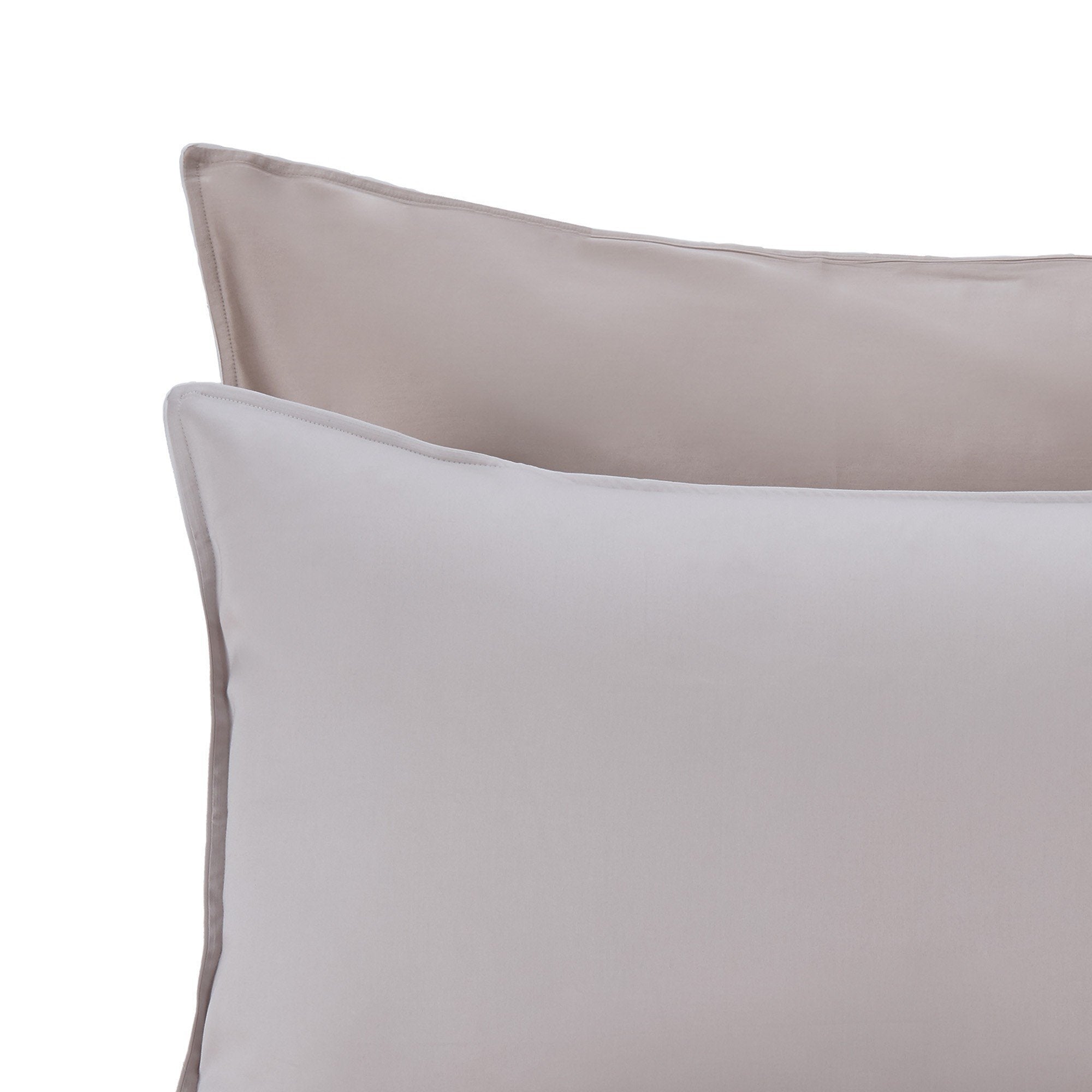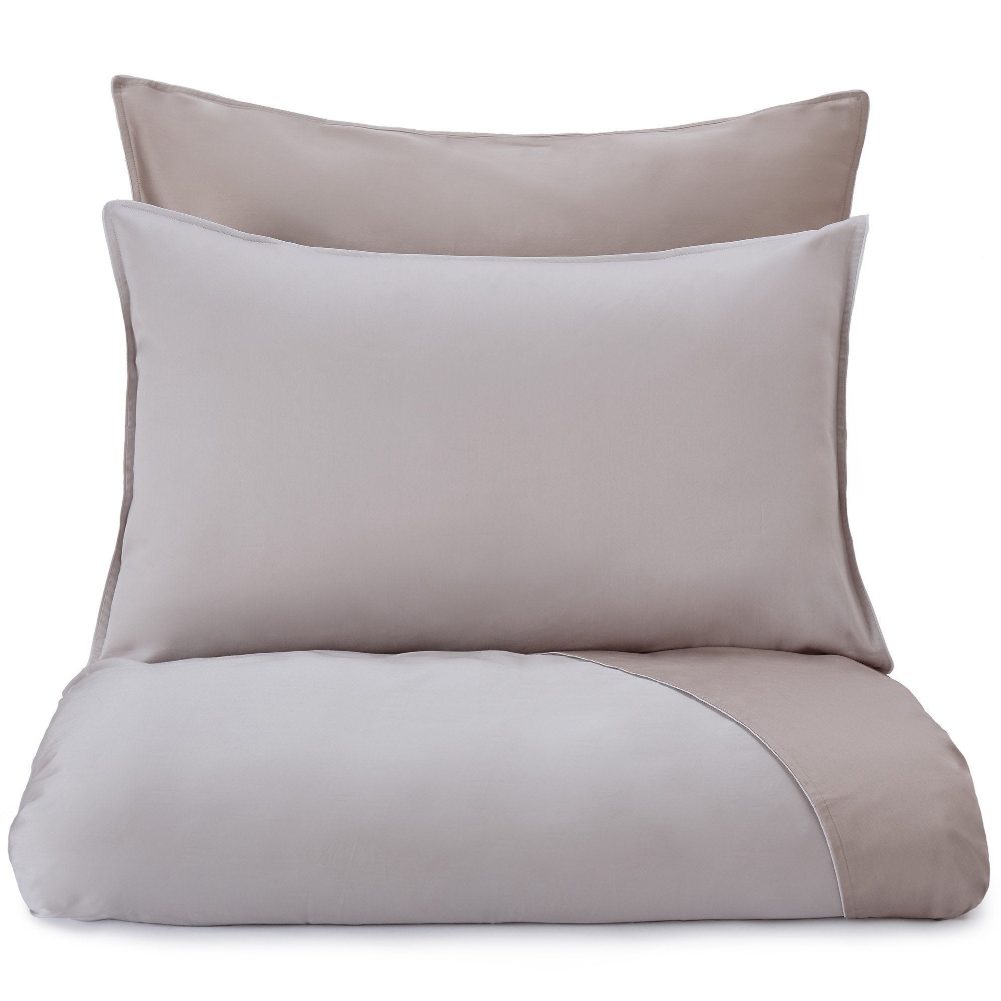Für unsere Premium-Kollektion Catania wird hochwertige ägyptische Baumwolle zu edlem Satin mit einer Fadenanzahl von 300 TC verwoben. Die beiden Seiten der eleganten Wendebettwäsche unterscheiden sich nur leicht im Farbton voneinander, stammen jedoch aus der gleichen Farbfamilie. Eine schmale, umlaufende, farblich abgesetzte Kanteneinfassung ist ein dezentes Detail, das das puristische Design charmant aufbricht. Sowohl Bettdecken- als auch Kopfkissenbezug werden mit einem Einschlag verschlossen.