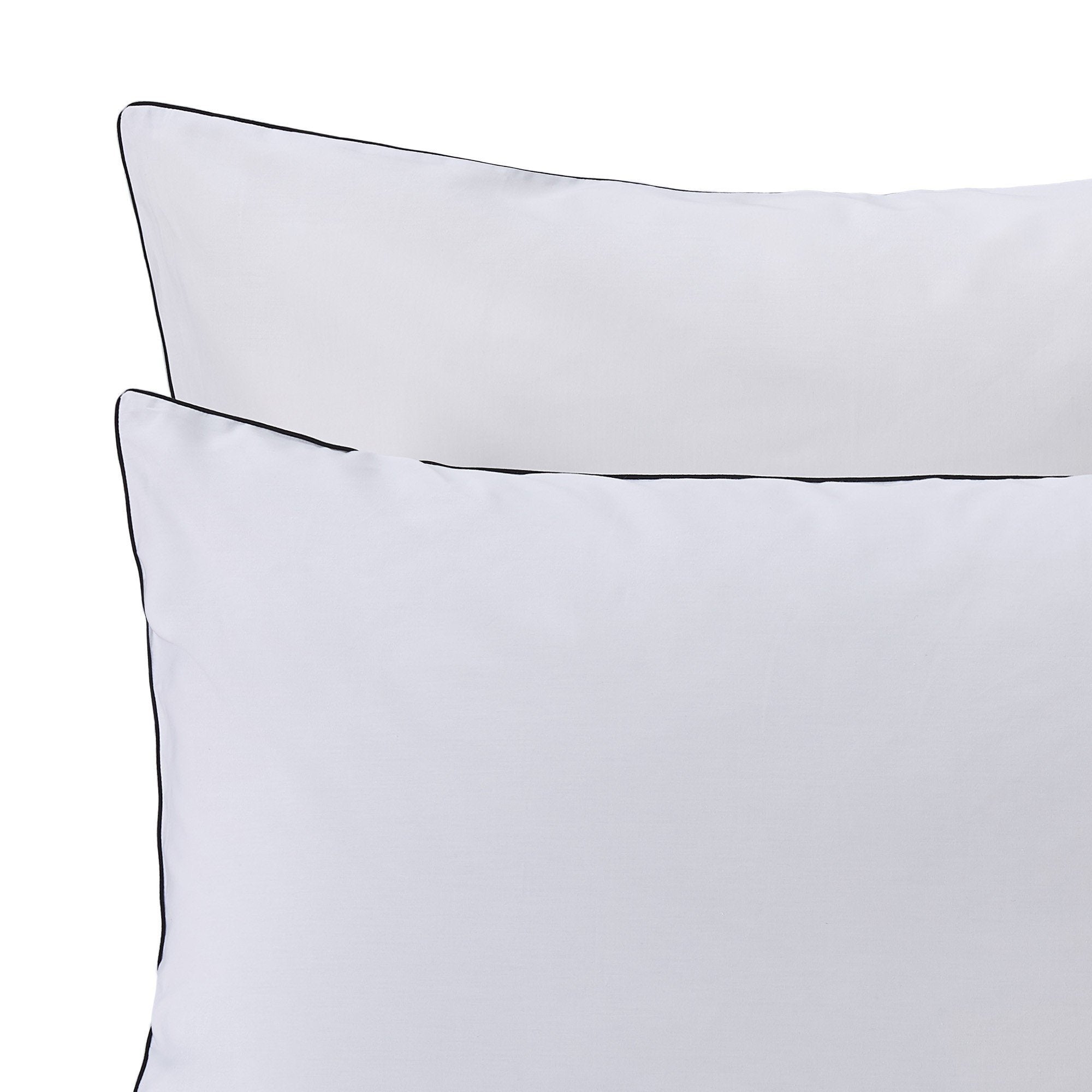 Unsere elegant-schlichte Perkal-Bettwäsche Vitero überzeugt mit hochwertiger Baumwolle und einem puristischen Finish. Unsere Partner in Portugal verarbeiten die Baumwolle zu edlem Perkal. Die schwarze Paspelierung an der Bettwäsche bietet einen besonderen Hingucker. Lassen Sie diese elegante Bettwäsche für sich sprechen oder kombinieren Sie sie mit mutigen Farben und Mustern.