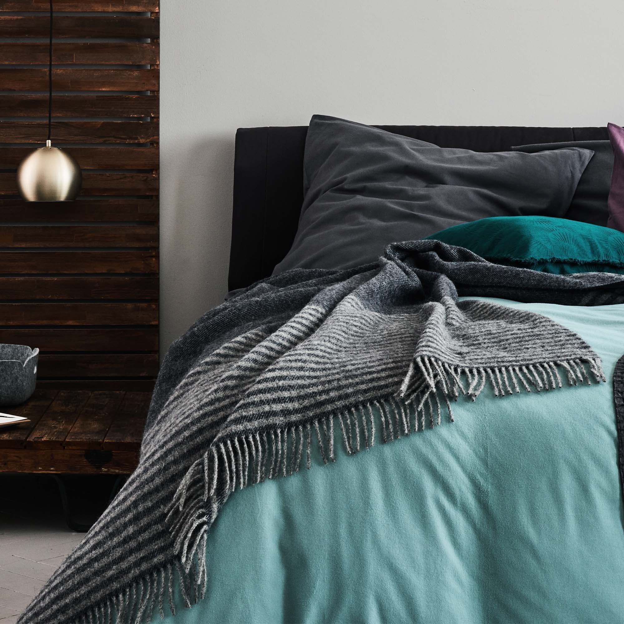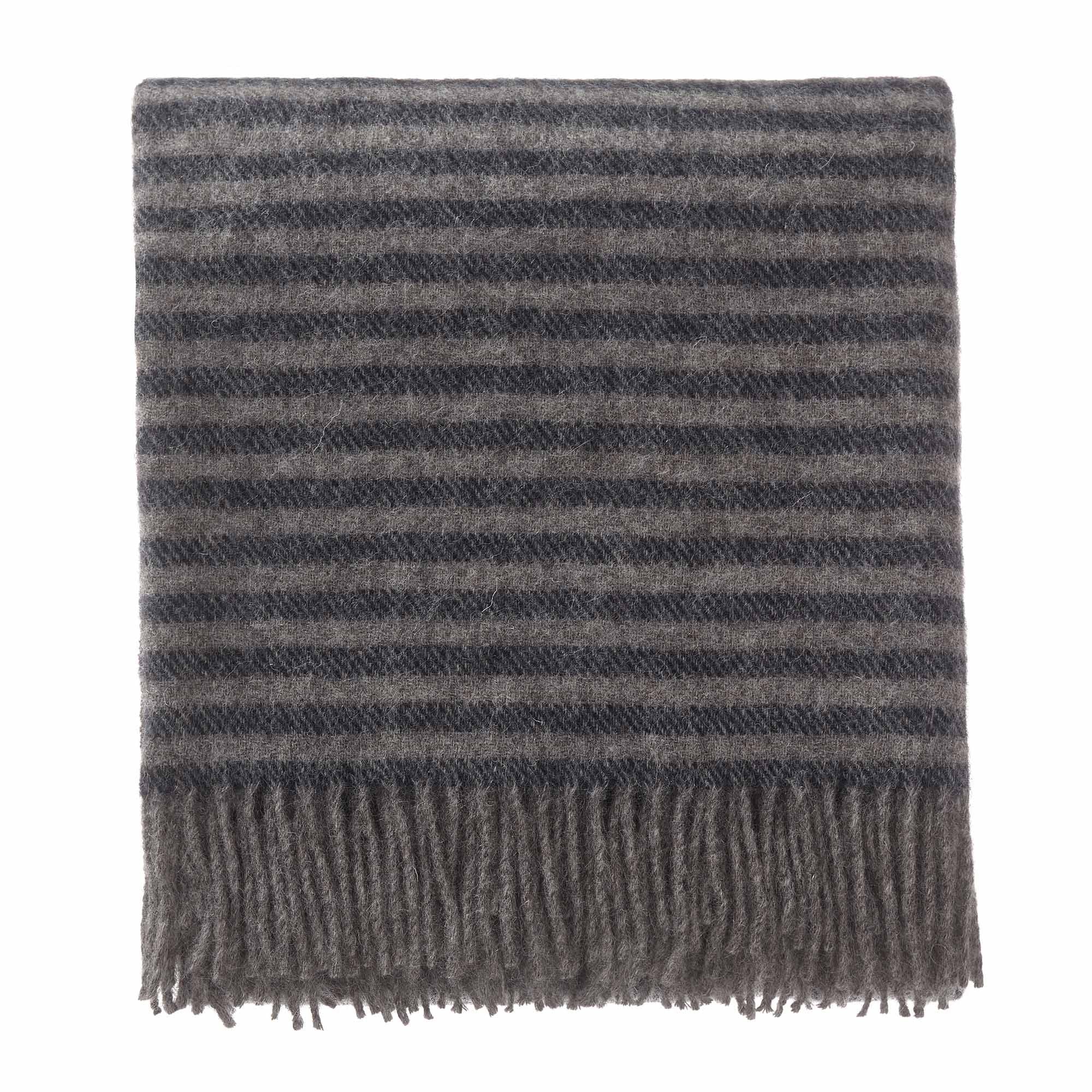 Unsere wärmende Wolldecke Visby wird von unserem Partner in Dänemark aus 100% skandinavischer Schurwolle in edler Twillbindung verwoben. Das lockere Streifenmuster und die Fransen an den Enden verleihen der leichten Decke ein zugleich modernes wie klassisches Design.