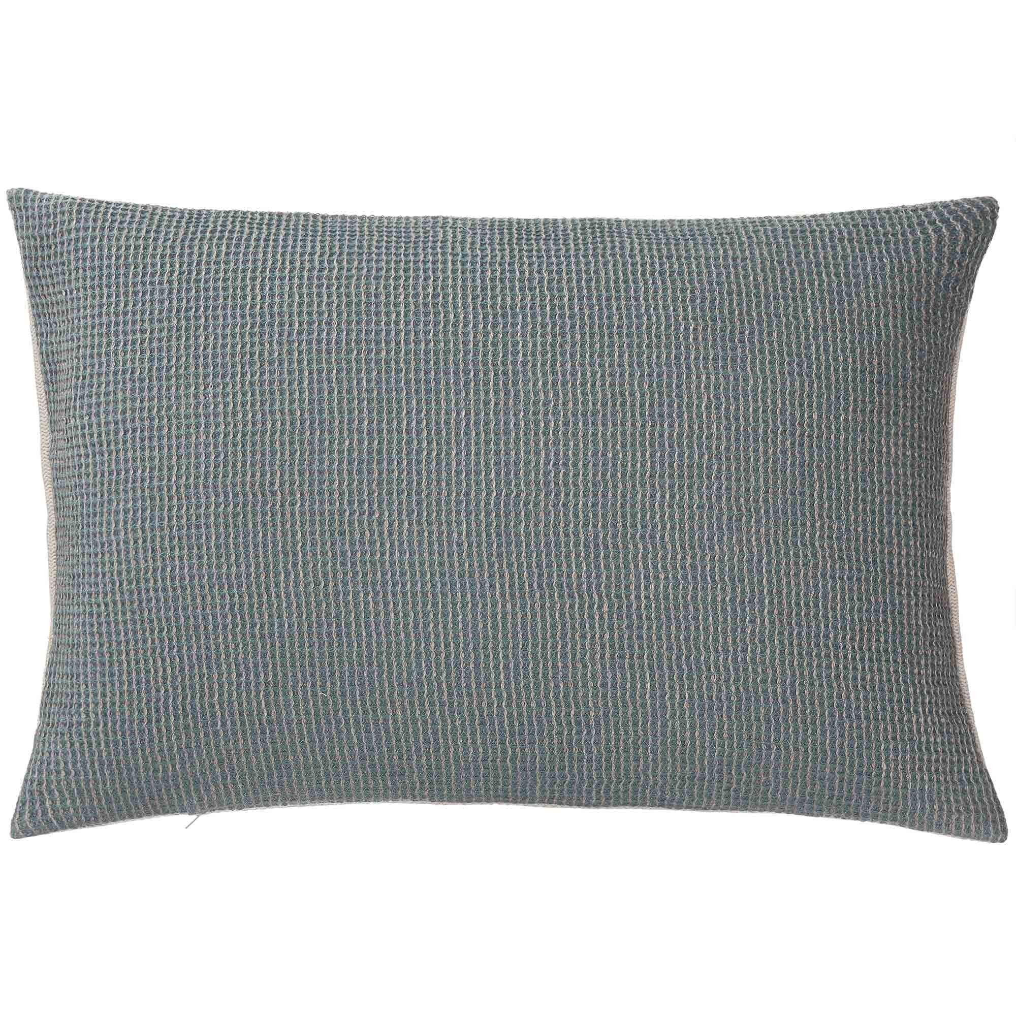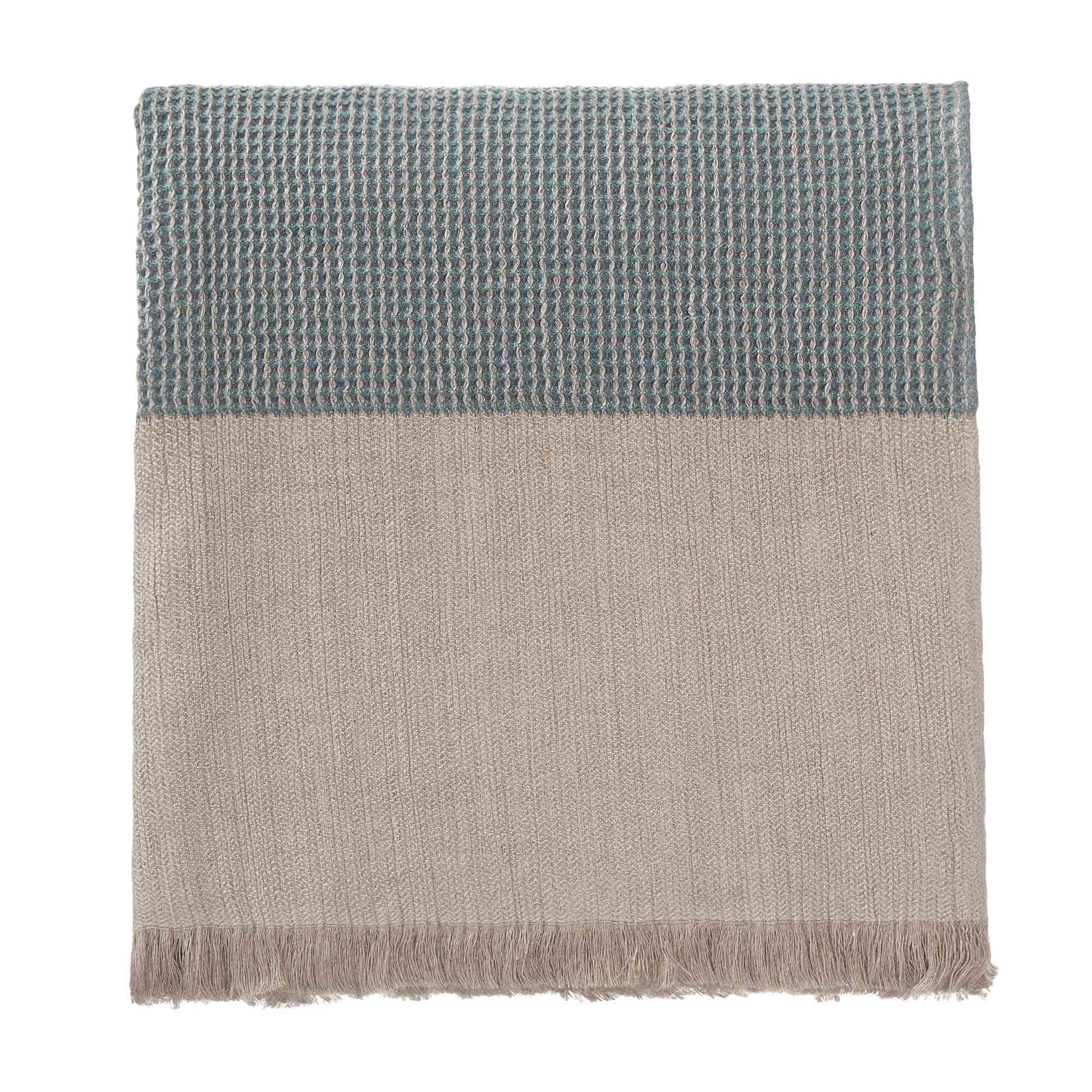 Mit einem Material-Mix aus hochwertiger Baumwolle und Leinen verbindet unsere Deckenkollektion Kovai charaktervolle Struktur mit einem schlichten, ästhetischen Design. Das Besondere am Waffelpiqué dieser Kollektion ist der in zwei Farben gewählte Faden, der einen ansprechenden Melange-Effekt auf der Voderseite entstehen lässt, während die Rückseite in zurückhaltendem Leinenstoff gehalten ist.