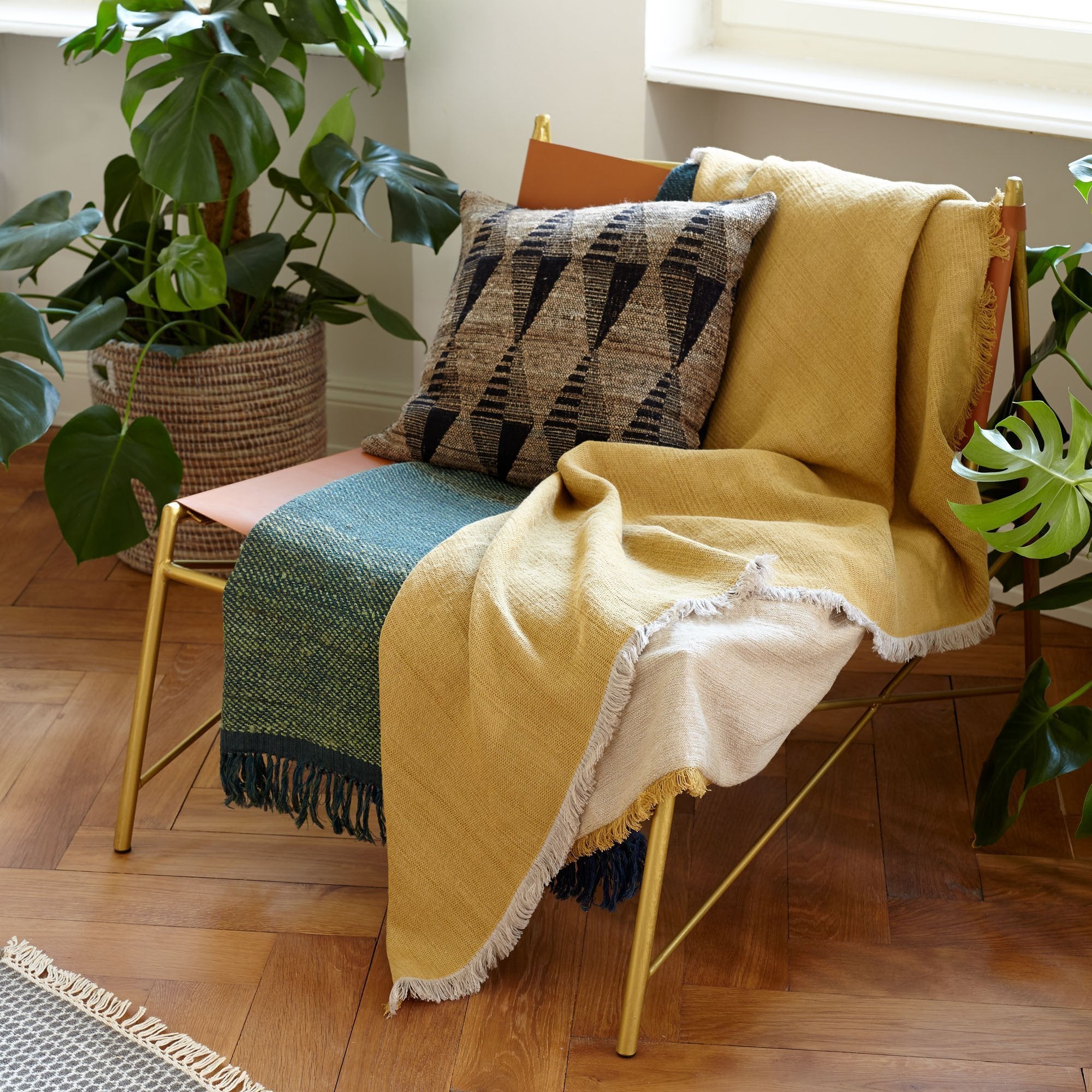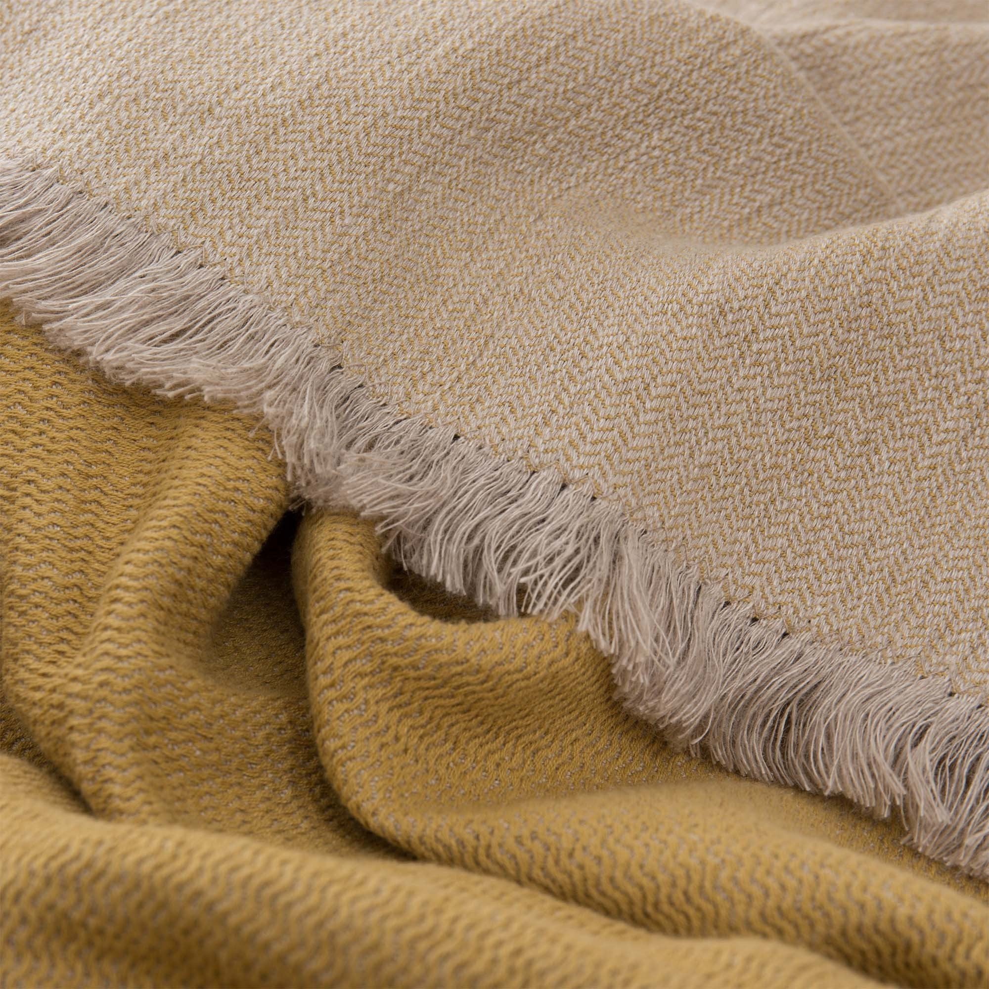 Natürliches Leinen und weiche Baumwolle werden für unsere Decke Alkas in edler Fischgratbindung verarbeitet. Ein zweiseitiges Design verleiht der angenehm leichten und anschmiegsamen Decke eine moderne Note, die durch kontrastierende Fransen stilvoll abgerundet wird. Dazu passt das Kissen aus der gleichnamigen Kollektion.