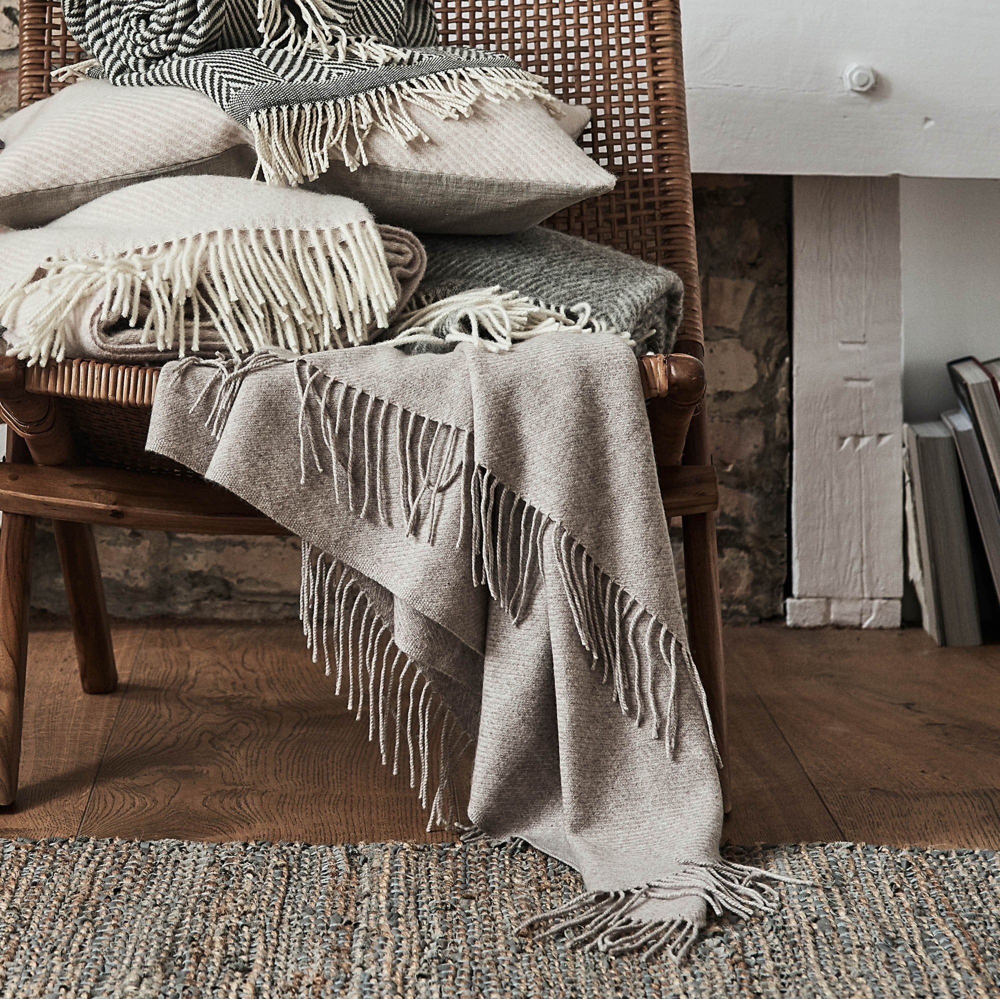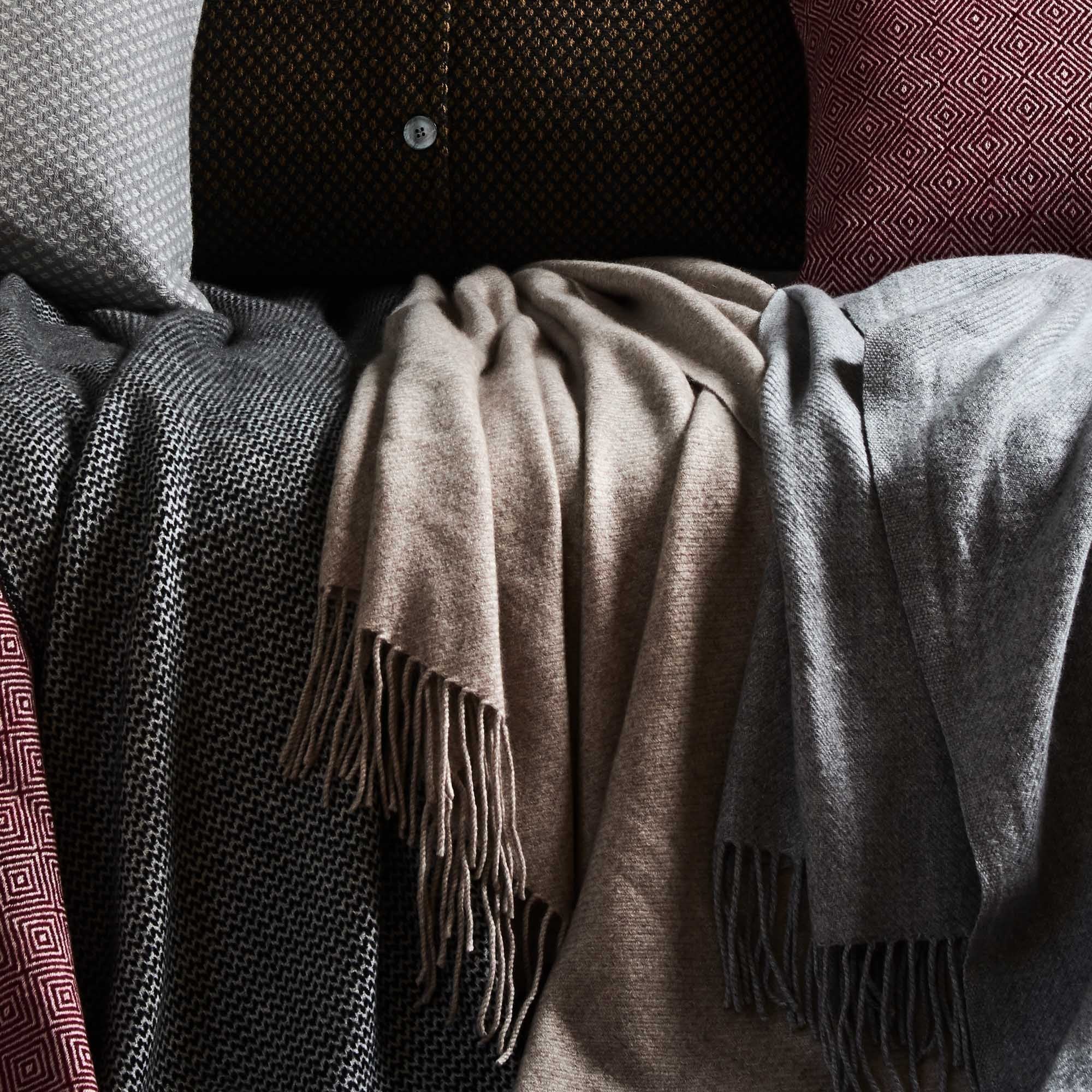 Unsere hochwertige Decke Almora wird von unseren Partnern in der Inneren Mongolei aus feinem Kaschmir und robuster Schurwolle in Twillbindung verwoben und überzeugt mit einer angenehmen Struktur. Mit den schlichten Fransen wirkt die Kaschmirdecke Almora besonders elegant und wird schon bald zu Ihrem Lieblingsaccessoire.