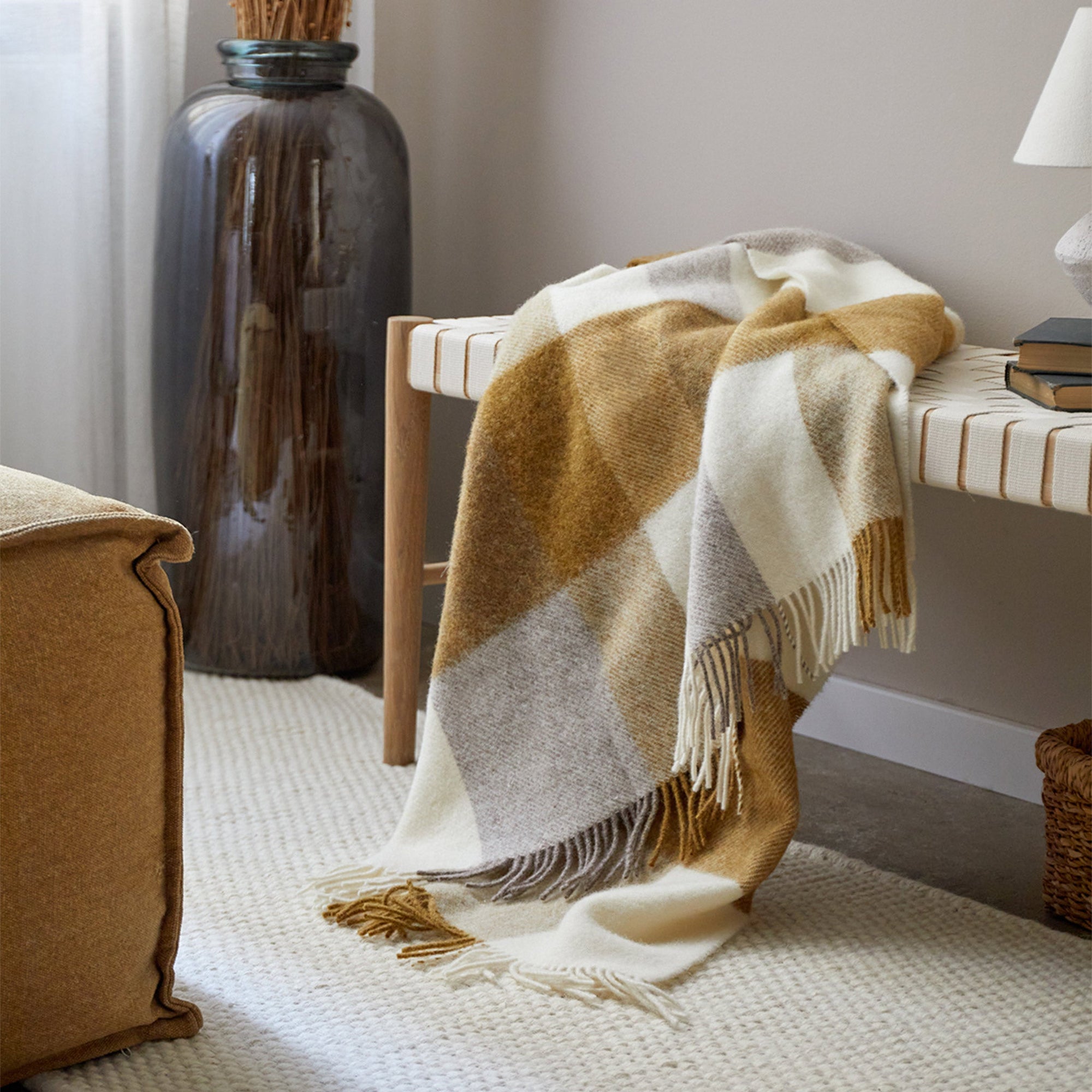 Unsere Decke Neriola wird aus wunderbar wärmender Schurwolle gefertigt und ist alles andere als kleinkariert. Mit ihrem großen Karomuster und stilvollen Fransen setzt sie einen gekonnten Akzent in Deinem Zuhause – ob auf dem Sofa im Wohnzimmer oder als zusätzliche Lage auf dem Bett, wenn es draußen so richtig kalt wird. Unser Tipp: Diese zeitlose Wolldecke ist auch immer ein gerne gesehenes Geschenk zu allen Jahreszeiten und Anlässen.