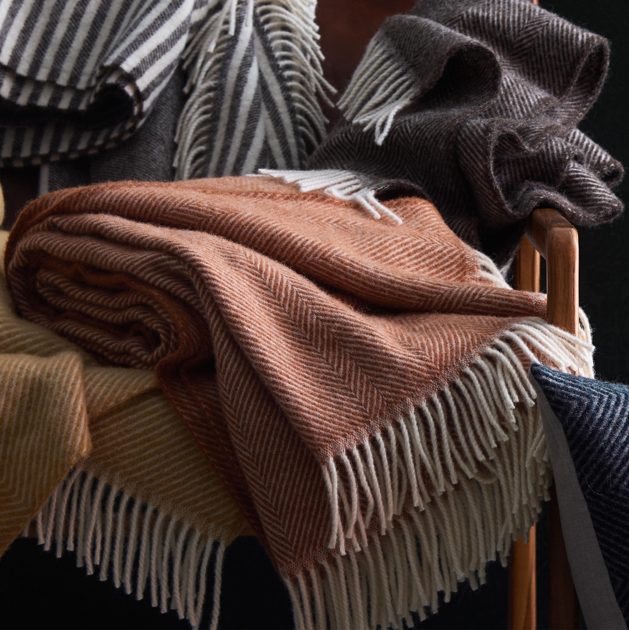 Weich und warm: 50% Alpakawolle und 50% Merinowolle machen unsere Decke Corcovado wohlig weich. Mit ihrem zeitlos schönen Fischgratmuster passt Corcovado in jeden Einrichtungsstil und schenkt Ihrem Wohn- oder Schlafzimmer einen stilvollen und wohnlichen Touch. Dezente Fransen runden das Design harmonisch ab.