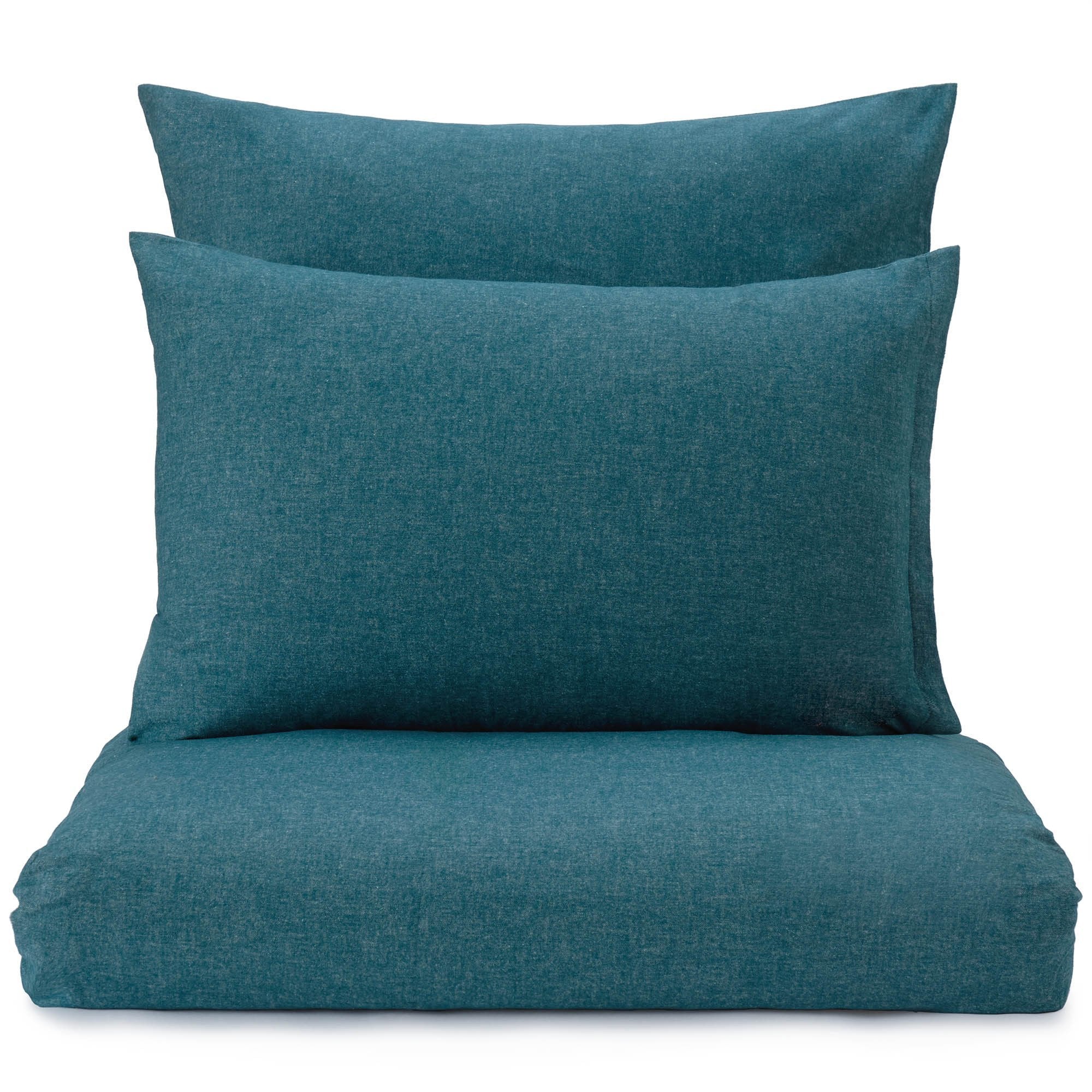 Unsere Kollektion Vilar bietet gerade in der kühleren Jahreszeit ganz besonders wohligen Komfort, da sie aus 100% Bio-Baumwolle in Leinwandbindung zu weichem Flanell mit leicht aufgerauter Oberfläche verwoben wird, das angenehm wärmt. Das sehr dezente Design wird durch den leichten Melange-Effekt des Stoffes ein wenig aufgelockert. Sowohl Bettdecken- als auch Kopfkissenbezug werden mit einem verdeckten Reißverschluss verschlossen.