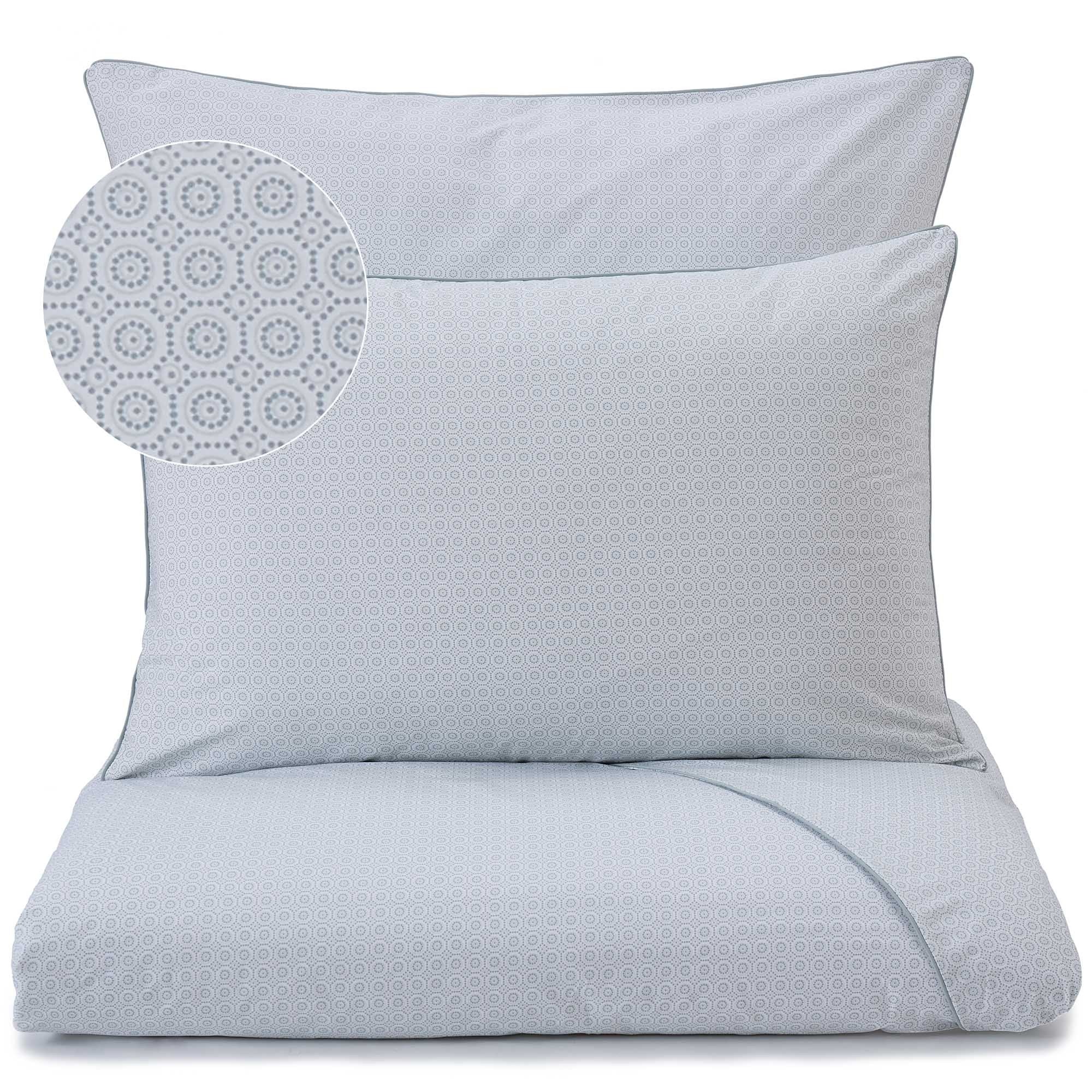 Unsere stilvolle Kollektion Cheles wird aus reiner Baumwolle in dichter Perkalbindung gefertigt. Ein an die 70er Jahre erinnernder Druck mit Punktmuster und kontrastierender Paspelierung holt Ihnen das frohe Flair dieses Jahrzehnts nach Hause. Reißverschlüsse an Bettdecken- und Kissenbezug unterstreichen das hochwertige Design dieser Kollektion.
