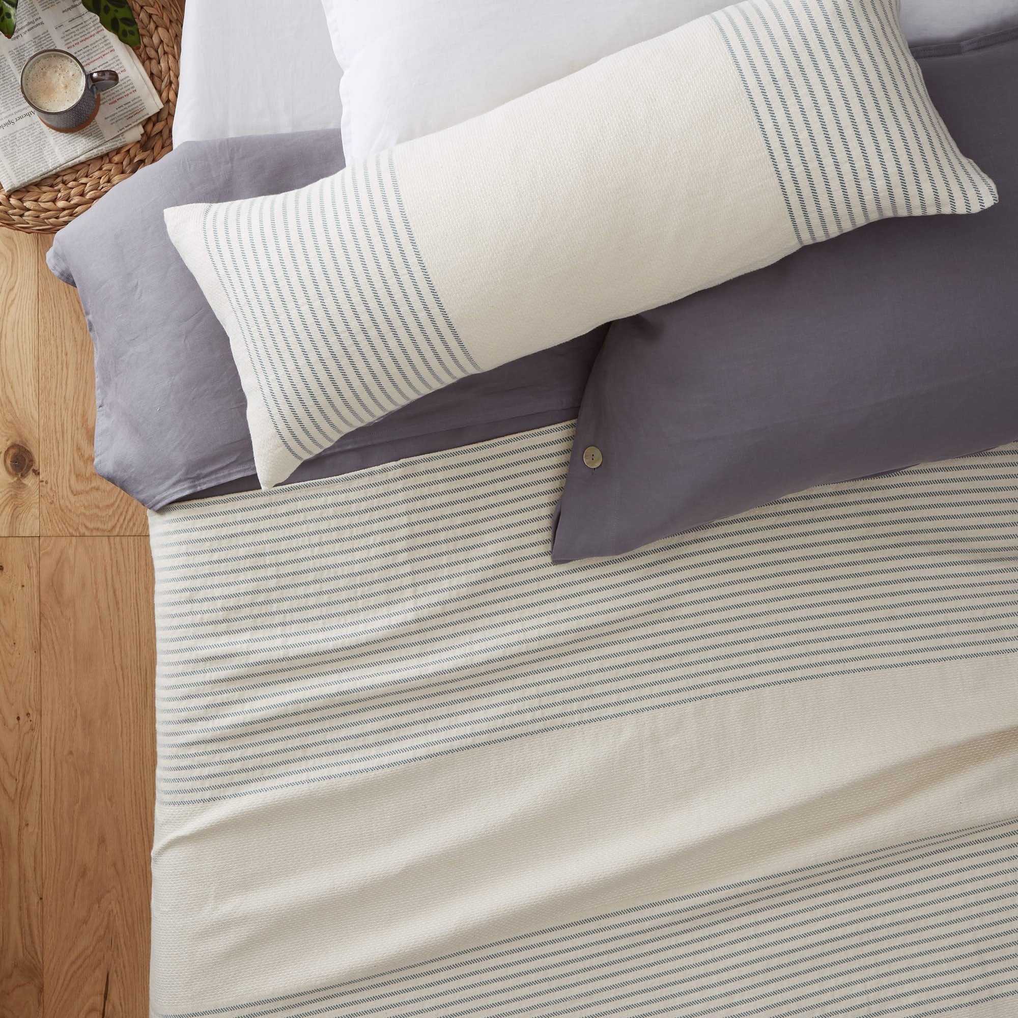 Unser Kissen Kadan wird aus einem Mix aus hochwertiger Baumwolle und natürlichem Leinen von unseren Partnern in Litauen in eleganter Jacquardbindung verwoben. Schließen lässt sich Kadan im Handumdrehen mit einem Reißverschluss an der Unterseite. Kombinieren Sie das Kissen zusammen mit der Tagesdecke aus der gleichnamigen Kollektion je nach Lust und Laune zu einem stimmigen und dynamischen Ensemble für Ihr Zuhause.
