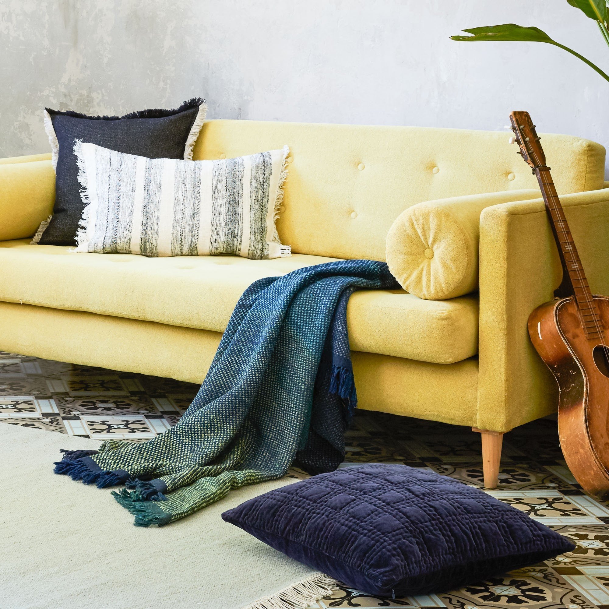 Mit unserem Samtkissen Samana bringen Sie einen ganz besonderen Akzent auf Ihr Sofa oder Bett. Unsere Partner in Indien verarbeiten hochwertige Baumwolle zu weichem Samt, das Ihrem Interieur eine luxuriöse Stimmung gibt. Der gesteppte Stoff verfügt auf der Vorderseite eine dünne Polsterung.