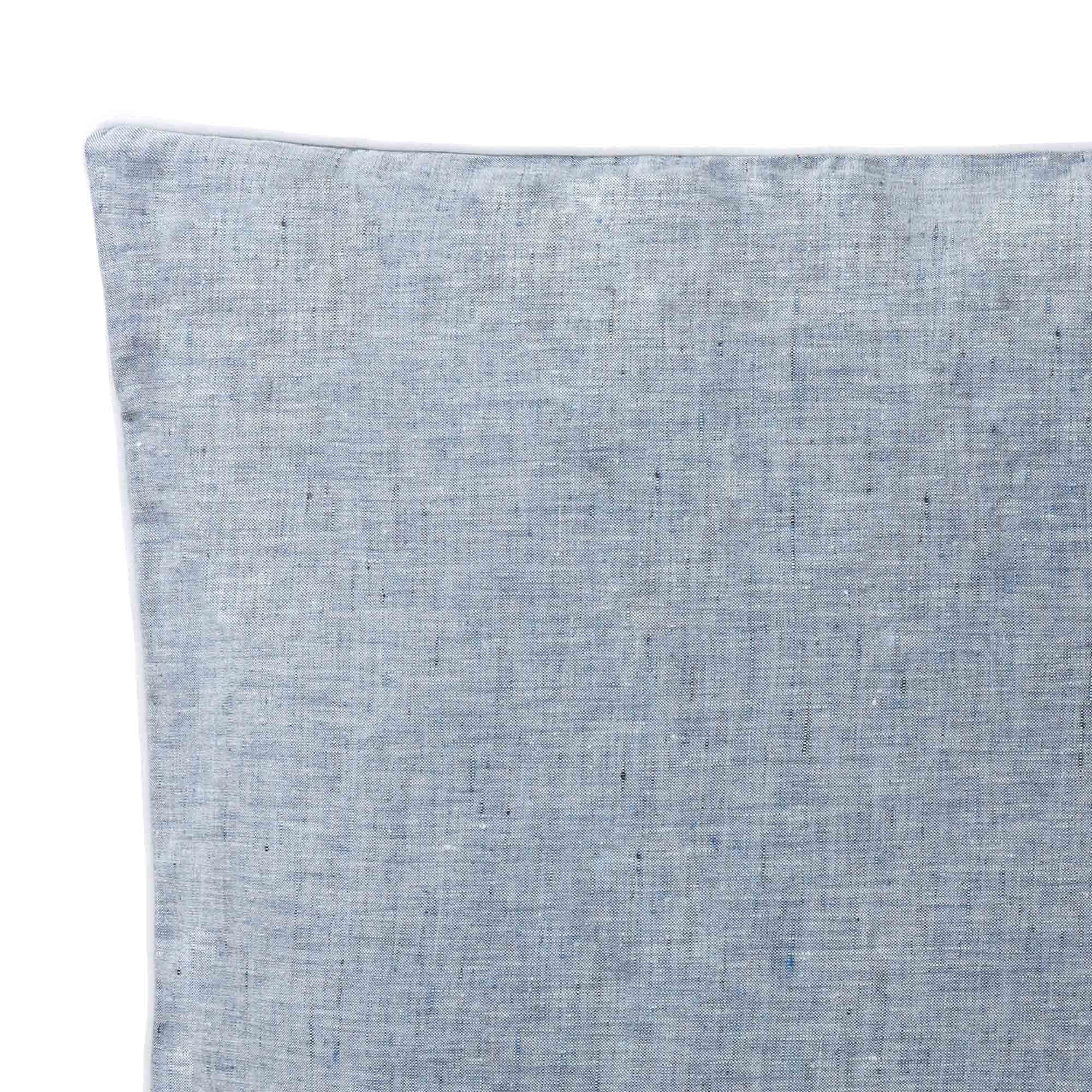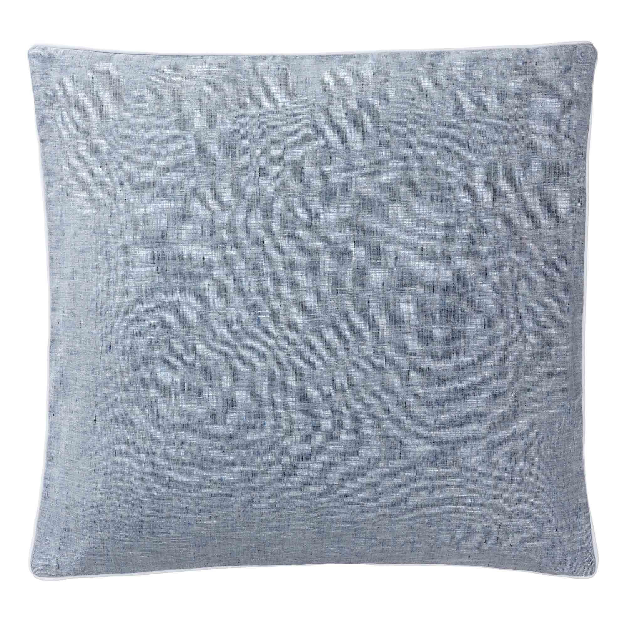 Für unsere Kissenhülle Sameiro werden Garne unterschiedlicher Farbnuancen und Stärken zu hochwertigem Chambray-Leinen verwoben. Das vorgewaschene Leinen bietet eine einzigartige Oberflächenstruktur und wird durch eine farblich abgesetzte Paspelierung dezent eingerahmt. Eine stilvolle Bereicherung für Wohn- und Schlafzimmer. Verschlossen wird das Kissen mit einem verdeckten Reißverschluss.