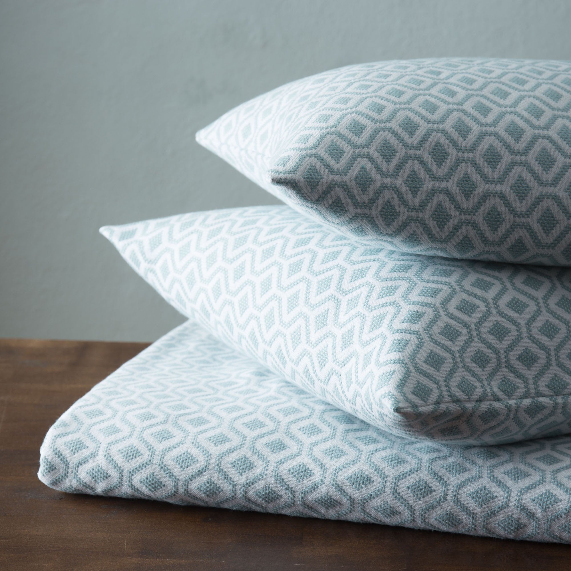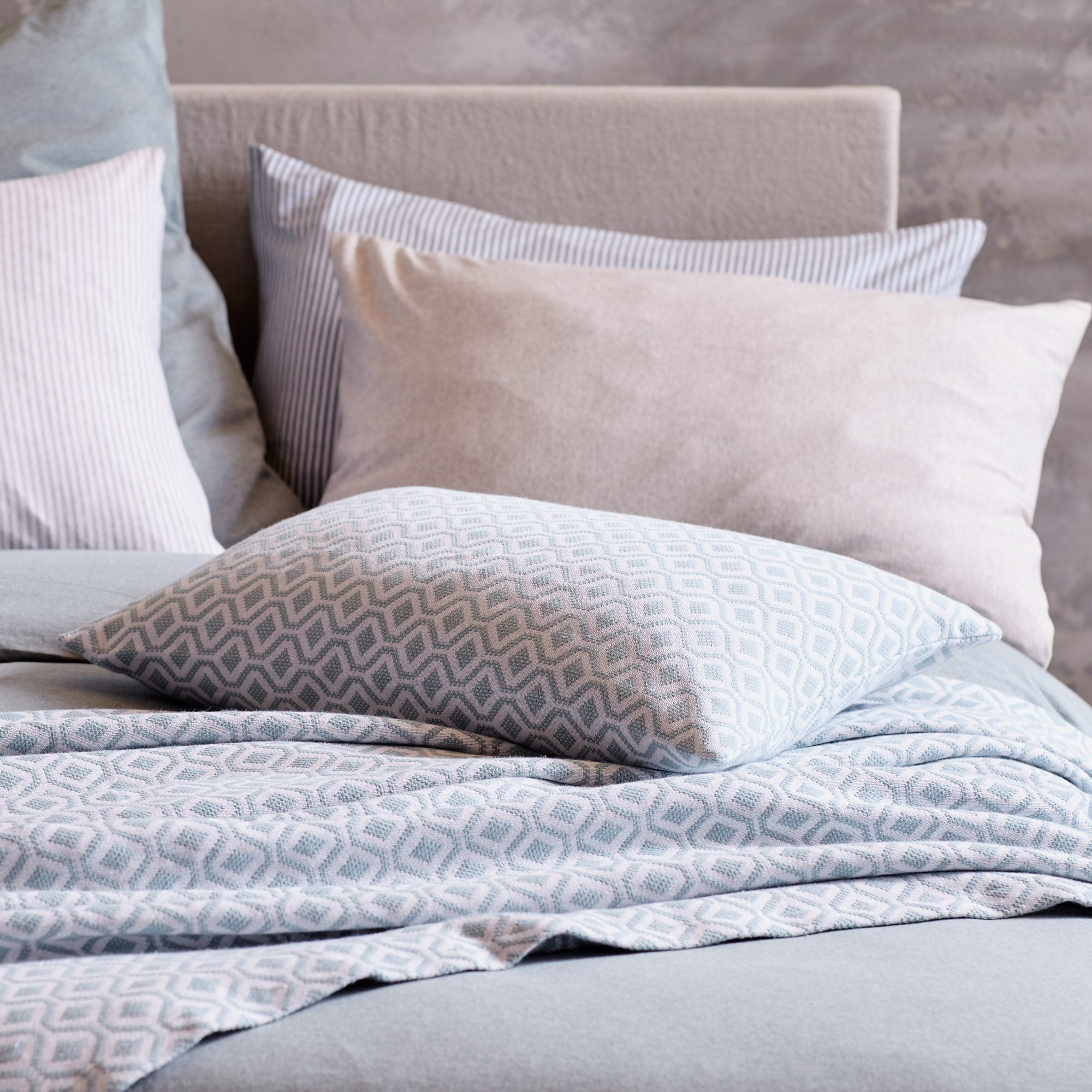 Erleben Sie modernes Design für Ihr Zuhause mit unserem Kissen Viana. Von unseren Partnern in Portugal aus bester Baumwolle gefertigt, begeistert das Kissen mit einem Diamantmuster, das in aufwendiger Jacquardbindung gefertigt wird. Ein Blickfang, der sich richtig gut anfühlt und dem OEKO-TEX® Standard 100 entspricht. Ein Reißverschluss schließt die zertifizierte Kissenfüllung.