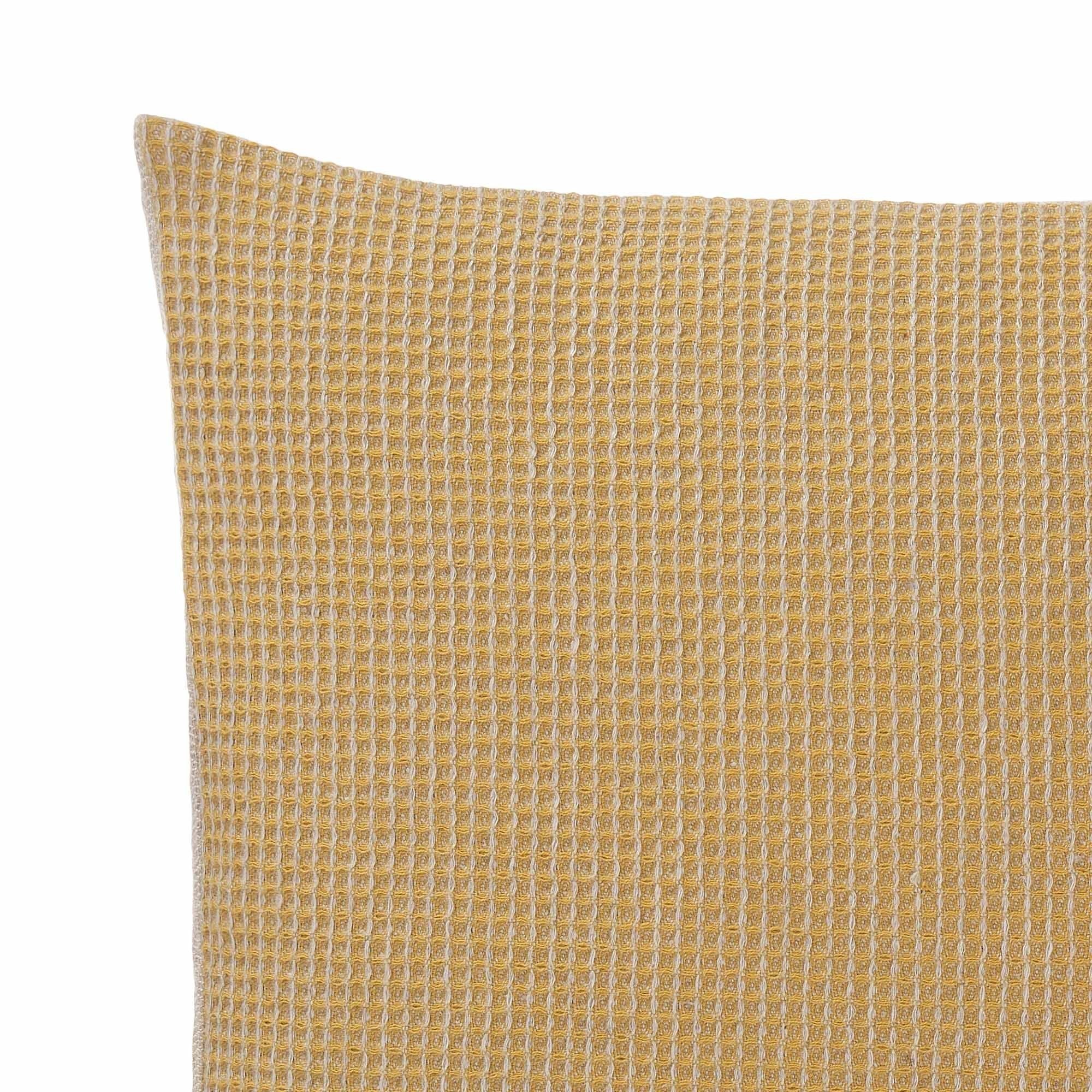 Mit einem Material-Mix aus hochwertiger Baumwolle und Leinen verbindet unsere Kollektion Kovai charaktervolle Struktur mit einem schlichten, ästhetischen Design. Das Besondere am Waffelpiqué dieser Kollektion ist der in zwei Farben gewählte Faden, der einen ansprechenden Melange-Effekt auf der Voderseite entstehen lässt, während die Rückseite in zurückhaltendem Leinenstoff gehalten ist. Die Kissenhülle wird durch einen seitlichen Reißverschluss geschlossen.