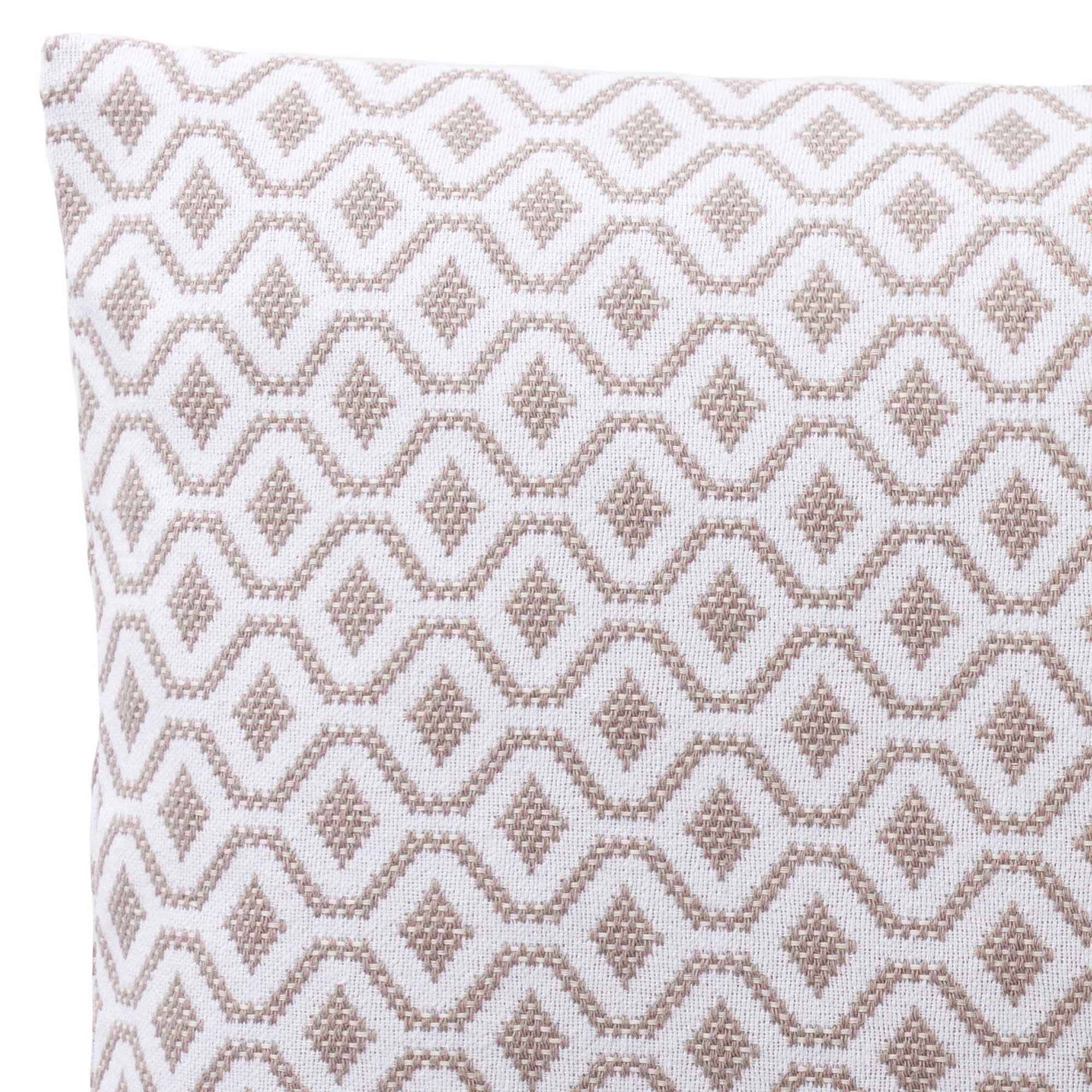 Erleben Sie modernes Design für Ihr Zuhause mit unserem Kissen Viana. Von unseren Partnern in Portugal aus bester Baumwolle gefertigt, begeistert das Kissen mit einem Diamantmuster, das in aufwendiger Jacquardbindung gefertigt wird. Ein Blickfang, der sich richtig gut anfühlt und dem OEKO-TEX® Standard 100 entspricht. Ein Reißverschluss schließt die zertifizierte Kissenfüllung.