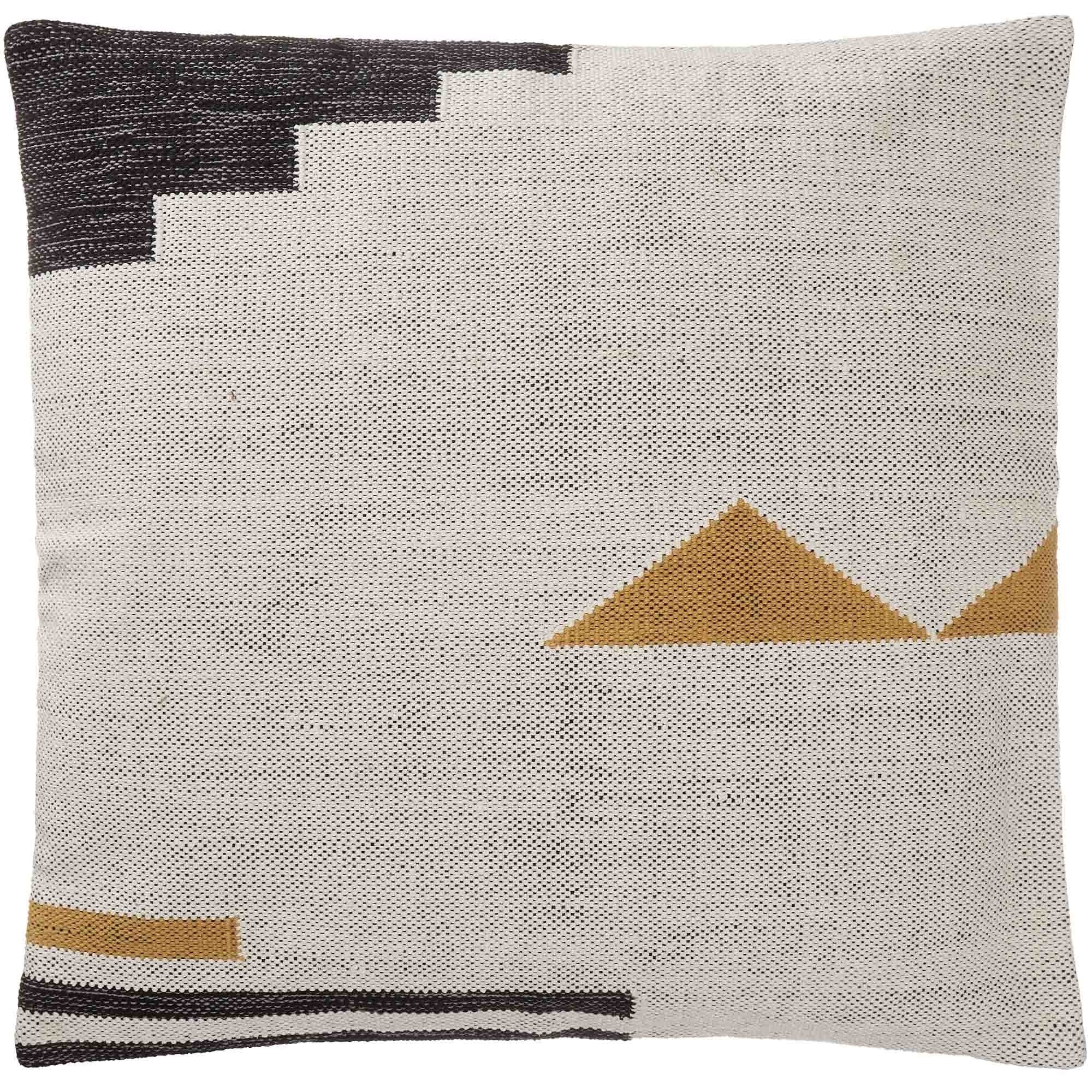 Zur Dekoration auf dem Sofa, im Bett, oder als Sitzkissen auf dem Boden – unsere Kissenhülle Raipuri wird in Ihrem Zuhause zum absoluten Hingucker. Das geometrische Design setzt sich aus Farbflächen in Schwarz, Gelb und Naturweiß zusammen und bezieht sich optisch auf den berühmten Kelim-Stil. Die Webstruktur mutet körnig an und schenkt der klaren und grafischen Komposition eine natürliche Komponente.