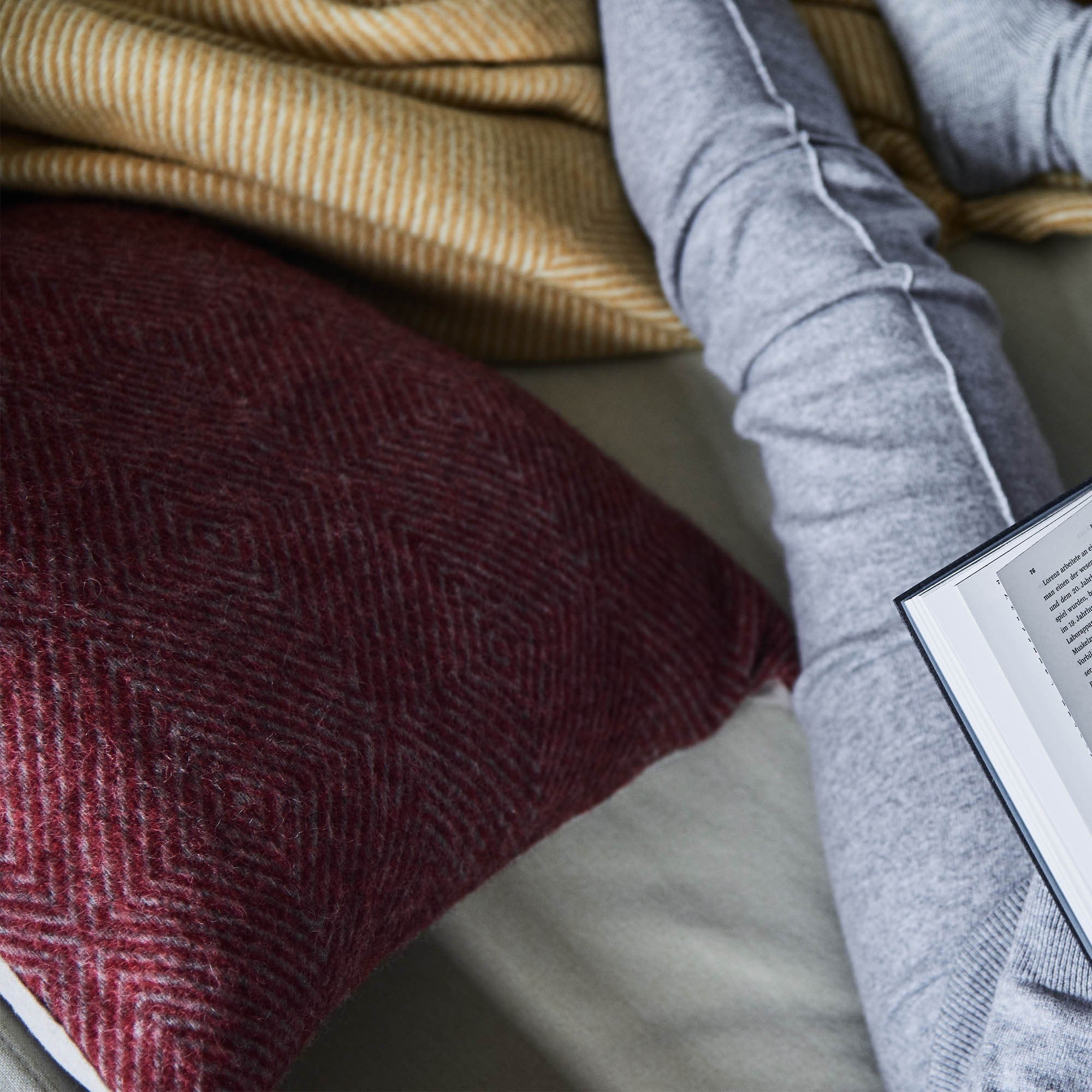 Für unsere Kollektion Gotland Dia wird in traditioneller Herstellung beste skandinavische Schurwolle mit besonders griffiger Haptik verwoben. Der klassische Look des zeitlos eleganten Webmusters lässt sich mit vielen Stilen kombinieren. Die Kissenhülle wird mit einem Einschlag auf der Rückseite verschlossen.