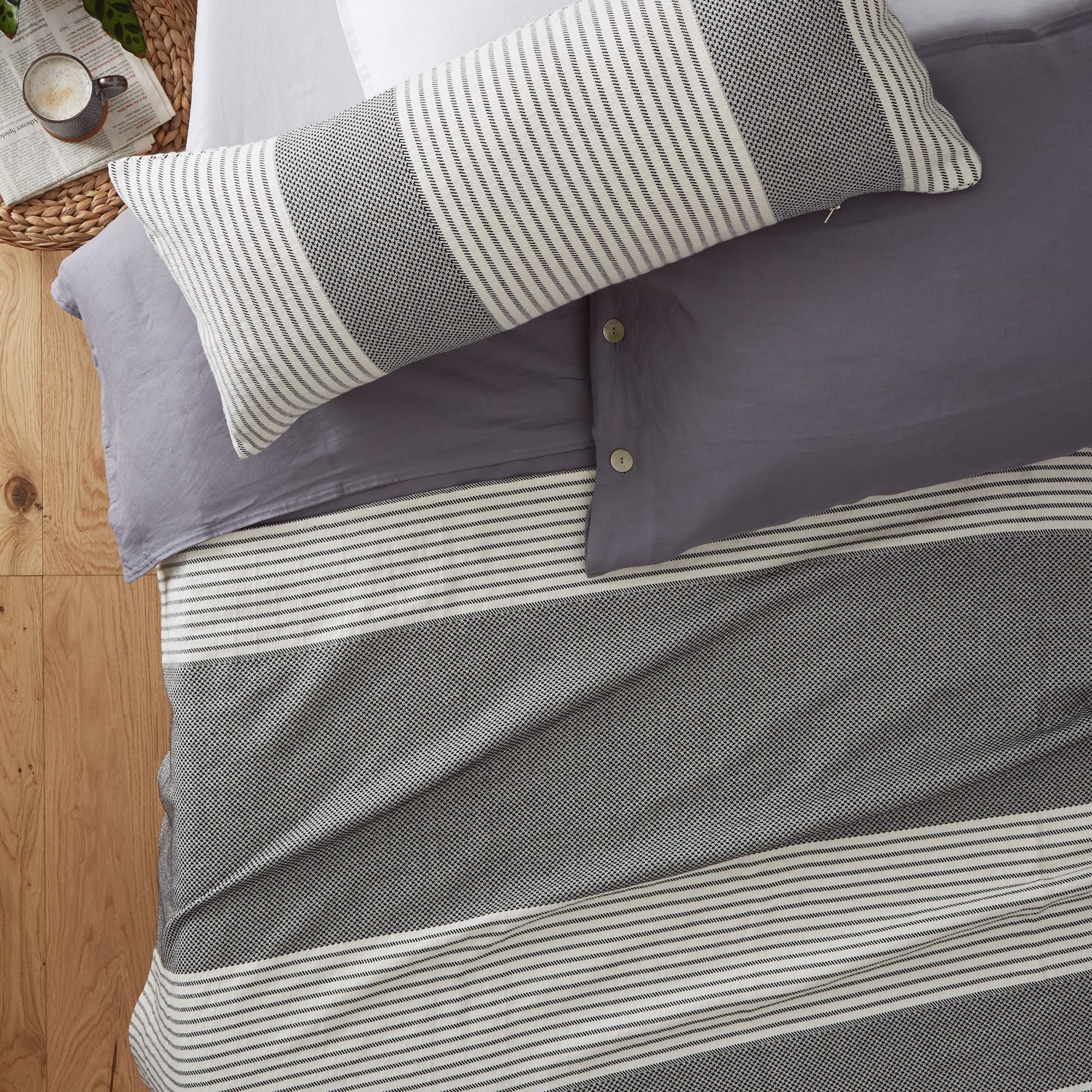 Unser Kissen Kadan wird aus einem Mix aus hochwertiger Baumwolle und natürlichem Leinen von unseren Partnern in Litauen in eleganter Jacquardbindung verwoben. Schließen lässt sich Kadan im Handumdrehen mit einem Reißverschluss an der Unterseite. Kombinieren Sie das Kissen zusammen mit der Tagesdecke aus der gleichnamigen Kollektion je nach Lust und Laune zu einem stimmigen und dynamischen Ensemble für Ihr Zuhause.