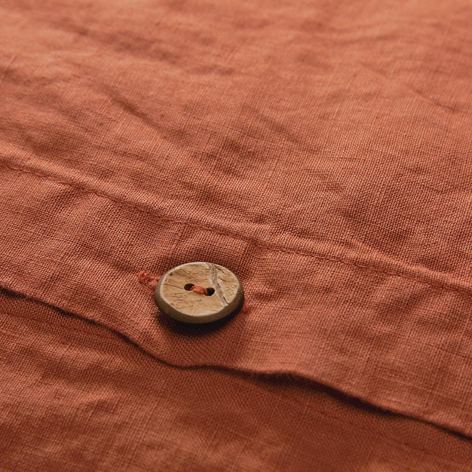 Unsere Kissenhülle Mafalda wird aus hochwertigem europäischem Leinen gefertigt. Durch einen sanften Stonewashed-Effekt fühlt sie sich besonders weich an und erhält einen dezenten Knitter-Look. Ergänzt durch Kokosnuss-Knöpfe auf der Vorderseite entsteht ein natürliches Design, das im Wohnzimmer oder im Schlafzimmer für ein entspanntes Ambiente sorgt. Die Rückseite der Kissenhülle ist schlicht gehalten.