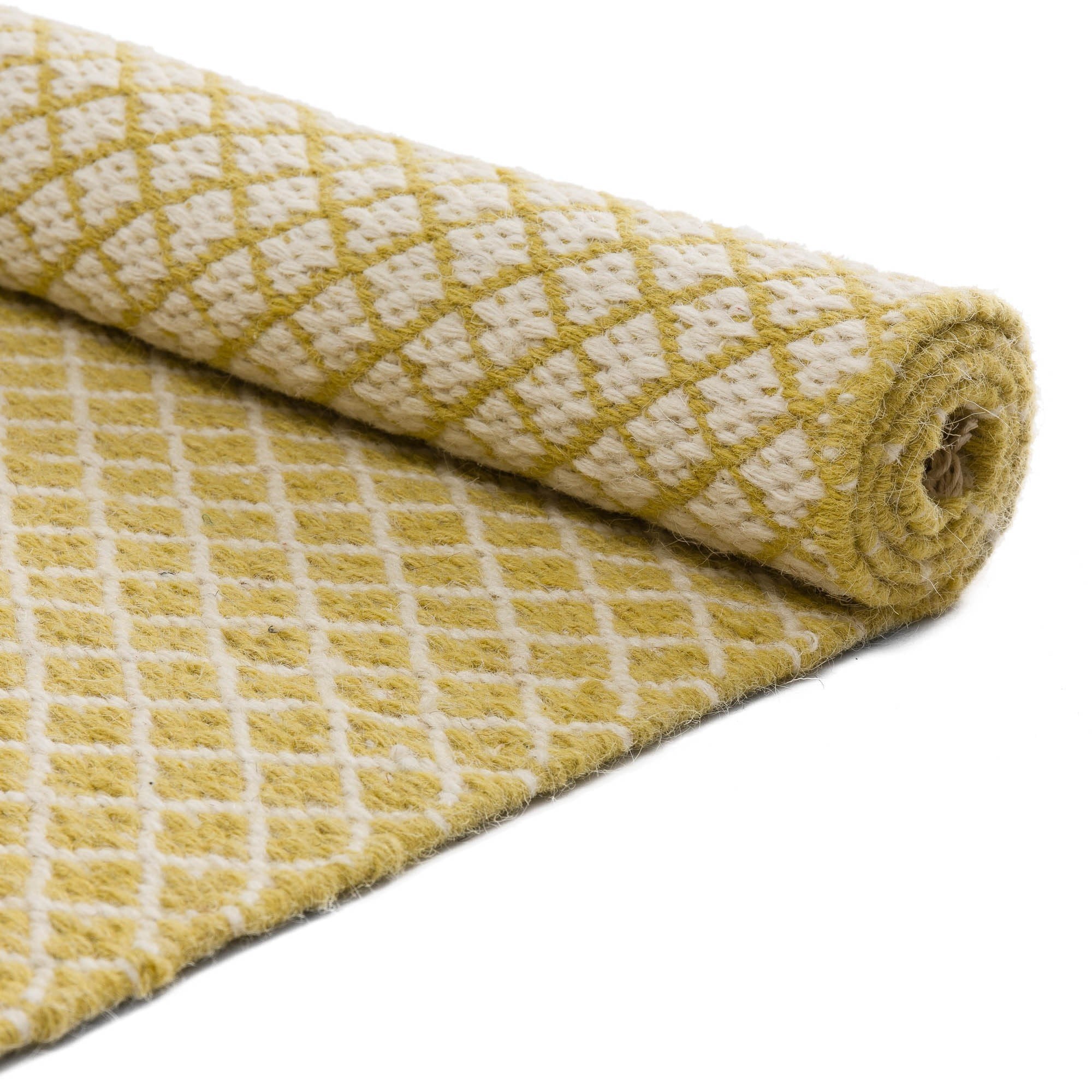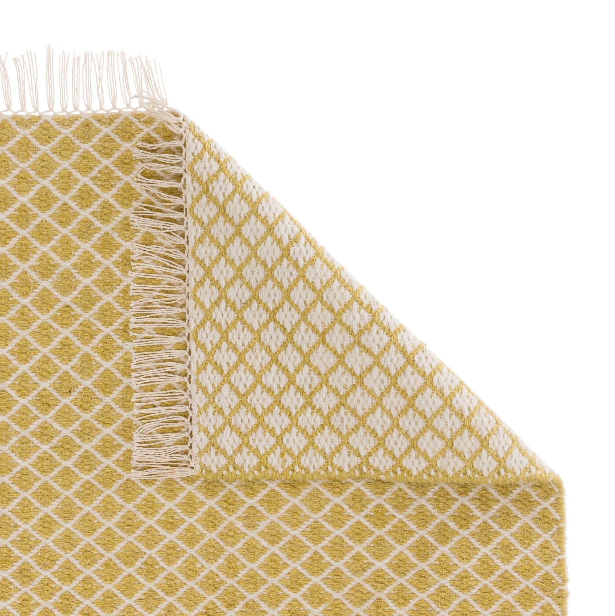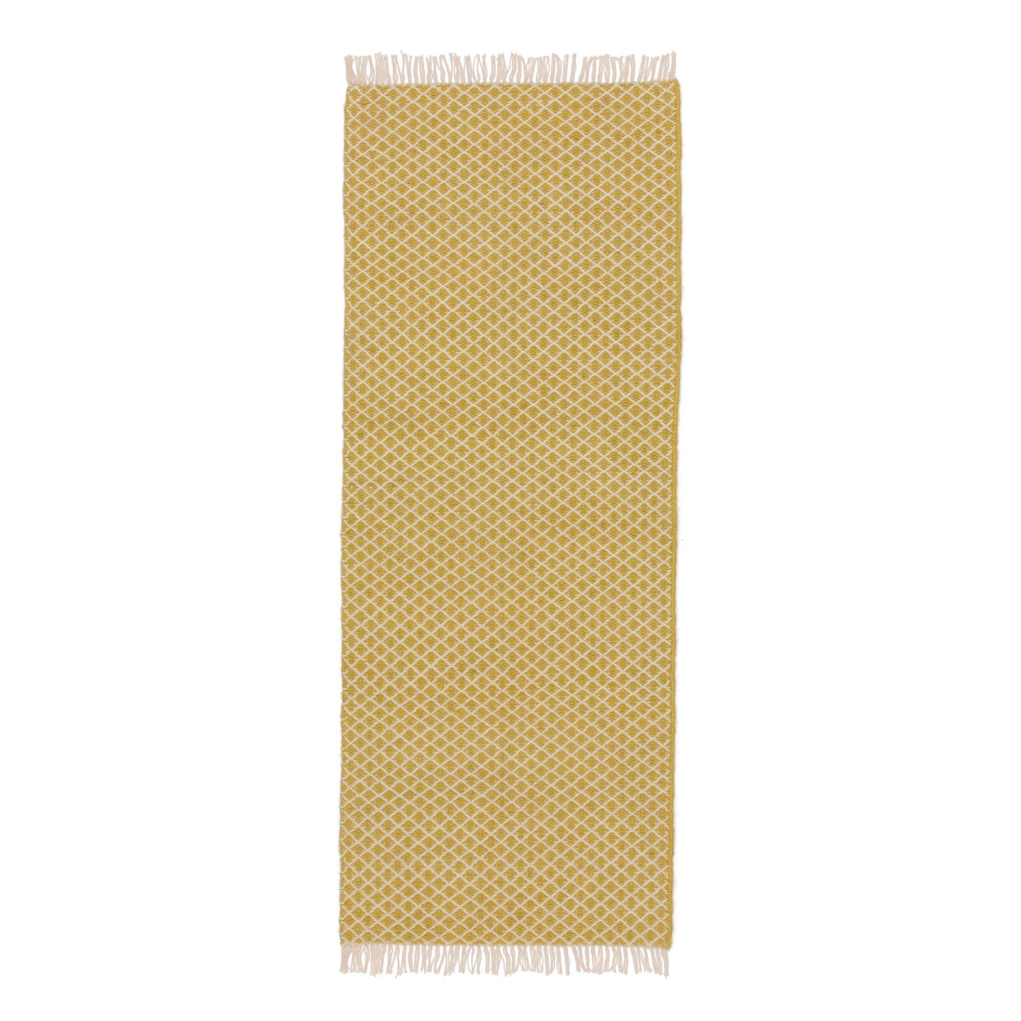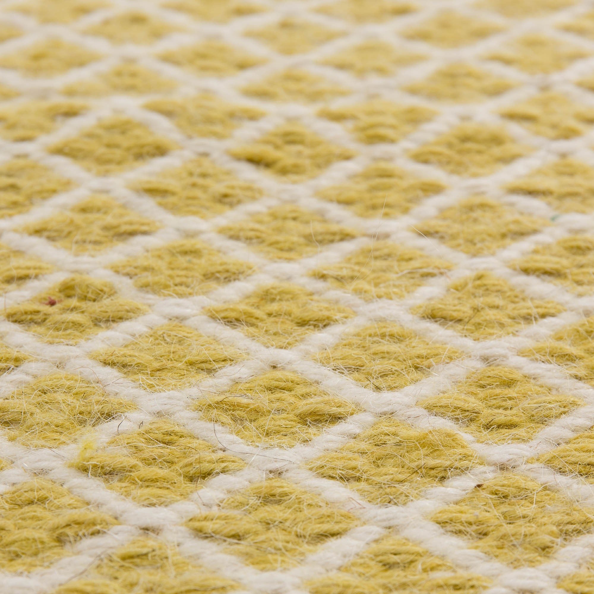 Für unsere Kollektion Loni wird ein Mix aus Wolle und Baumwolle von Hand in Leinwandbindung verwoben. Mit einem gespiegelten Diamantmuster auf Ober- und Unterseite schmückt Loni Ihre Böden nach Belieben in hellerer oder dunklerer Variante. Zarte Fransen an den Enden runden den zeitlosen Stil des Läufers ab. In Kombination mit einer rutschfesten Unterlage bleibt der Teppich an Ort und Stelle.