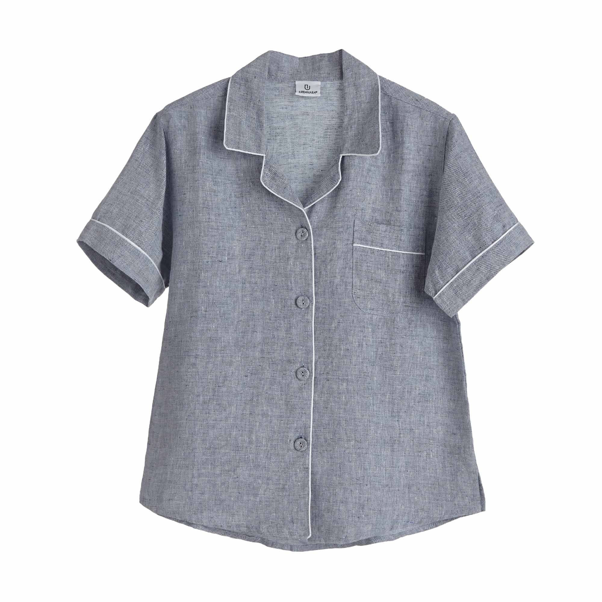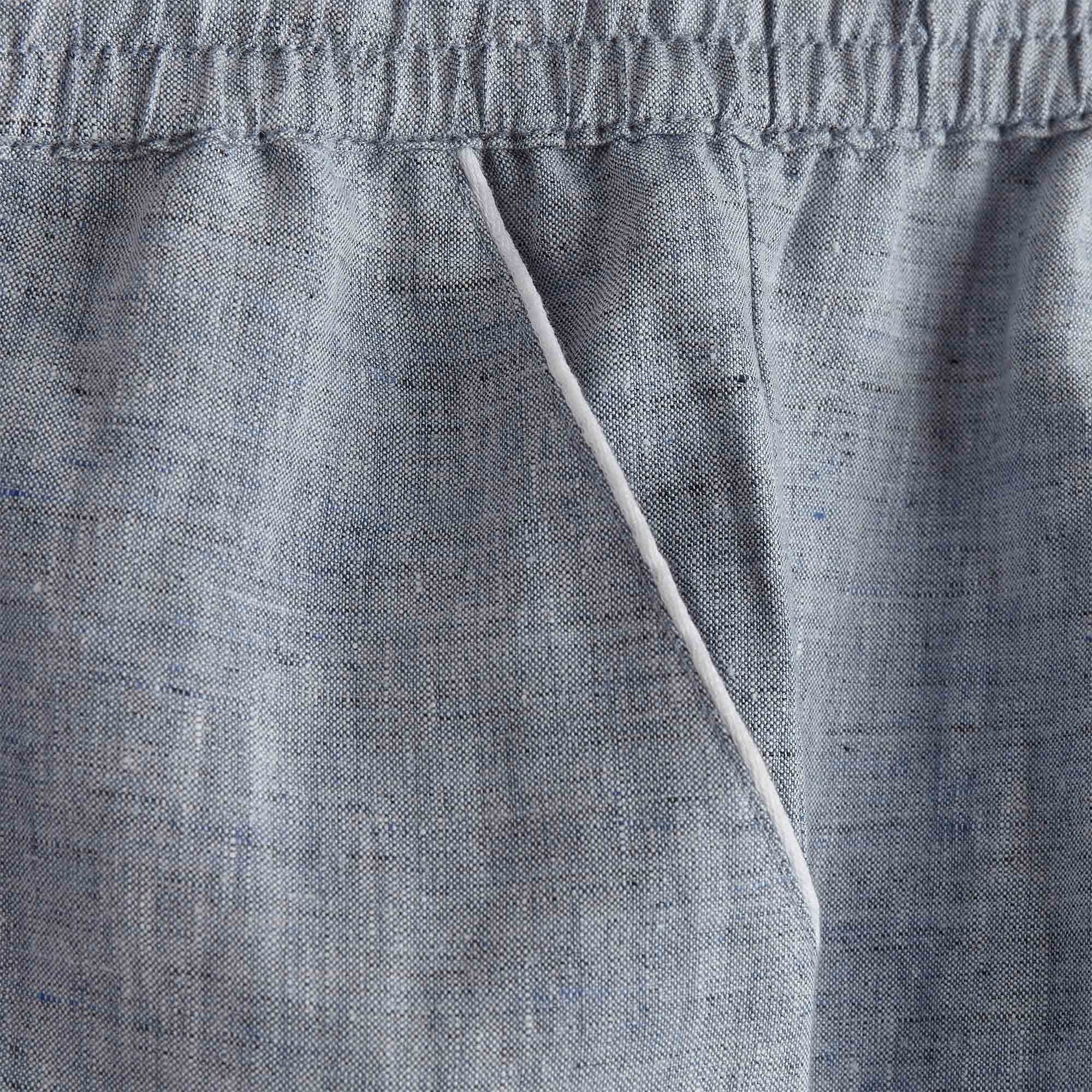 Für unsere Nachtwäsche Casaal haben wir einen reizvollen Chambray-Effekt gewählt. Die vom melierten Stoff farblich abgesetzte Paspelierung fügt ein dezentes Details hinzu und schafft einen Übergang zwischen modern und klassisch.