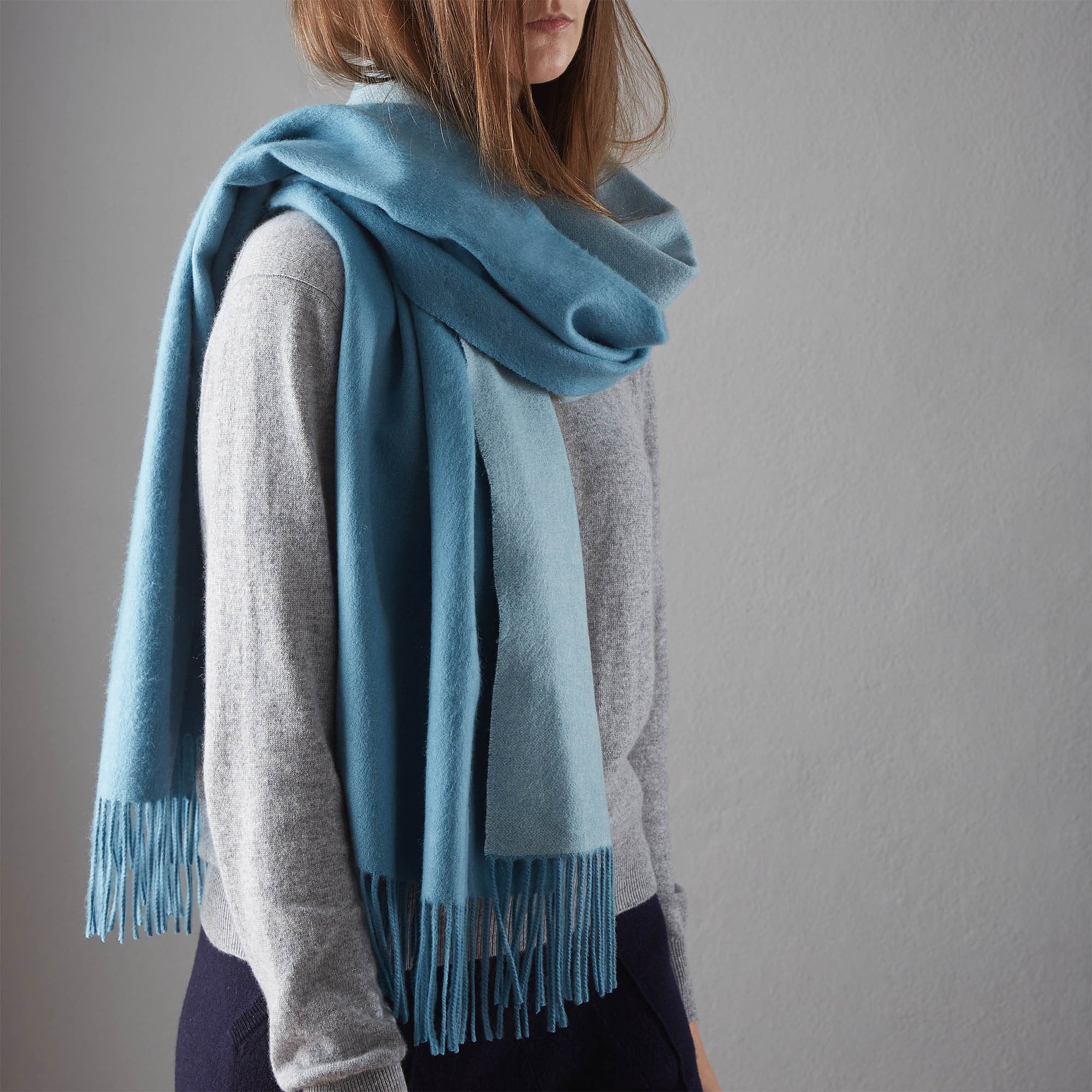 Unser Schal Sontra bringt Luxus in Ihren Winteralltag. Obwohl er nur 10% Kaschmirwolle enthält, fühlt er sich unglaublich weich und angenehm auf der Haut an. Zudem ist er beidseitig verwendbar – so haben sie zwei Looks zur Auswahl. Die von Hand gezwirnten Fransen verleihen der Kollektion das gewisse Etwas und machen Sontra zu einem absoluten Lieblingsteil.
