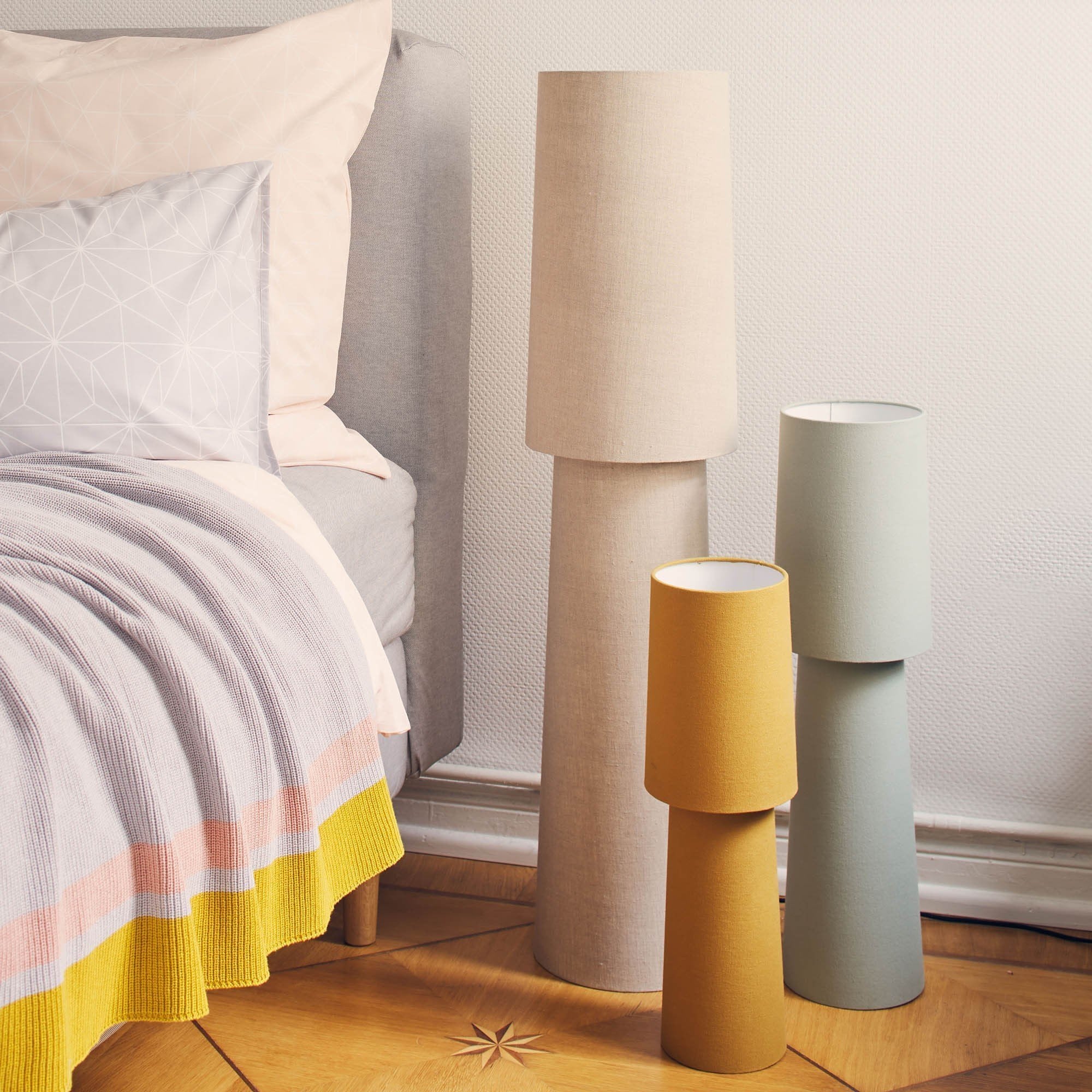 Unsere Stehlampe Kollur verleiht Ihrem Zuhause verspielte Retro-Akzente und einen besonderen Farbklecks. Die einzigartige Stoffverkleidung und deren Farbgebung sorgen für ein sehr warmes, sanftes Licht. Das konische Design erinnert an den geradlinigen Stil der 60er Jahre und fungiert doch als zeitloser Blickfang in Ihrem Zuhause.