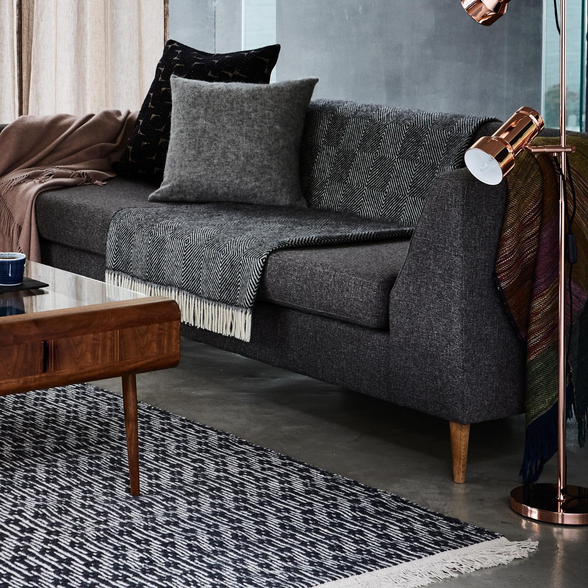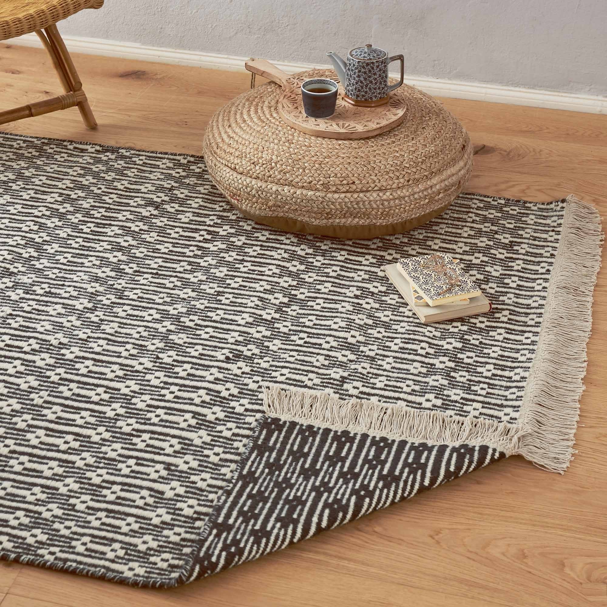 Bei unserer Kollektion Lumaco trifft Scandi-Design auf einen Touch von Ethnostil. Dank des zurückhaltenden Farbkonzepts können Sie den Teppich mit jedem Stil harmonisch kombinieren und bringen gleichzeitig durch etwas Bewegung in den Raum. Durch das praktische Wendedesign können Sie im Handumdrehen einen neuen Look schaffen. Kombiniert mit einer rutschfesten Unterlage bleibt der Teppich an Ort und Stelle.