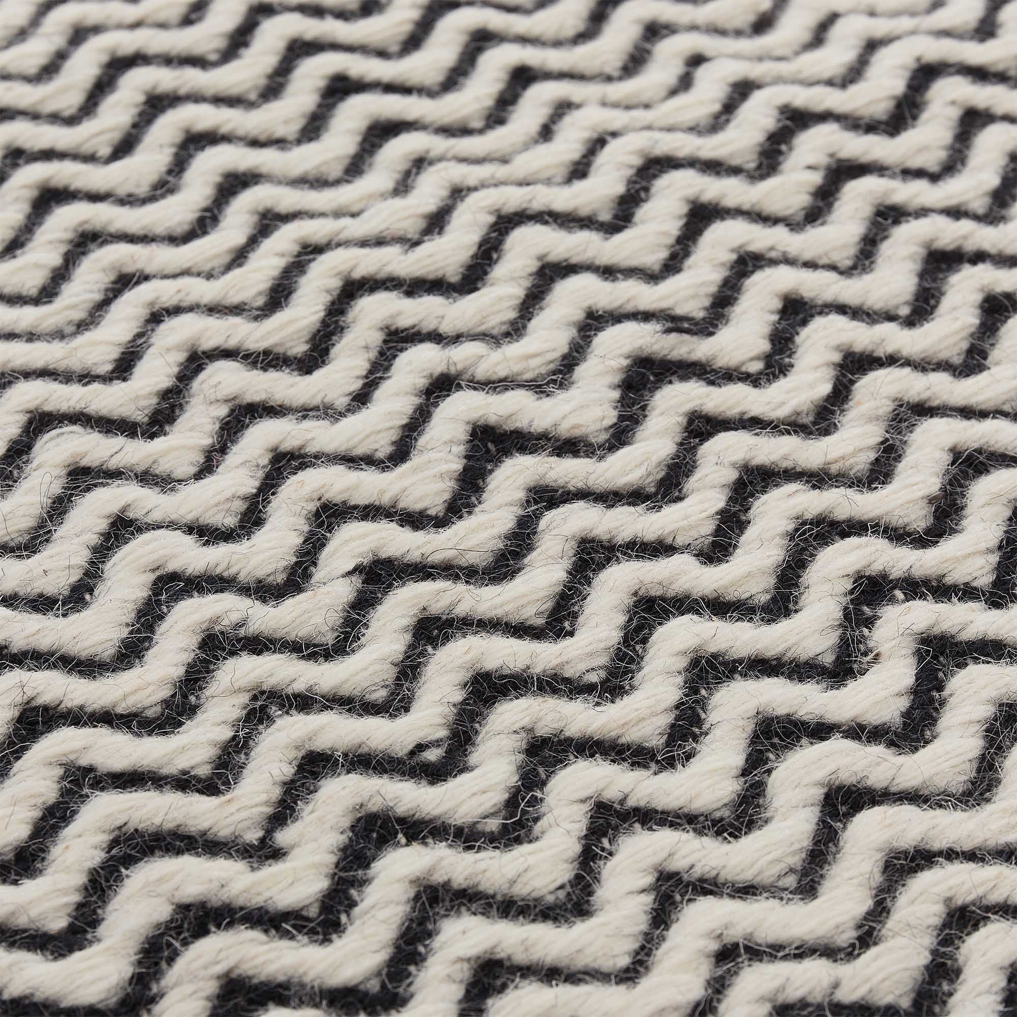 Unsere Teppichkollektion Pandim wird aus 100% Schurwolle von Hand gewoben. Mit dem grafischen Zickzackmuster schaffen Sie einen skandinavischen Look in Ihrem Zuhause. Das schmale Zickzackdesign ist die aufregende Variante des ruhigeren Streifenmusters und bringt Bewegung und Dynamikl in den Raum. Kombiniert mit einer rutschfesten Unterlage bleibt der Teppich an Ort und Stelle.