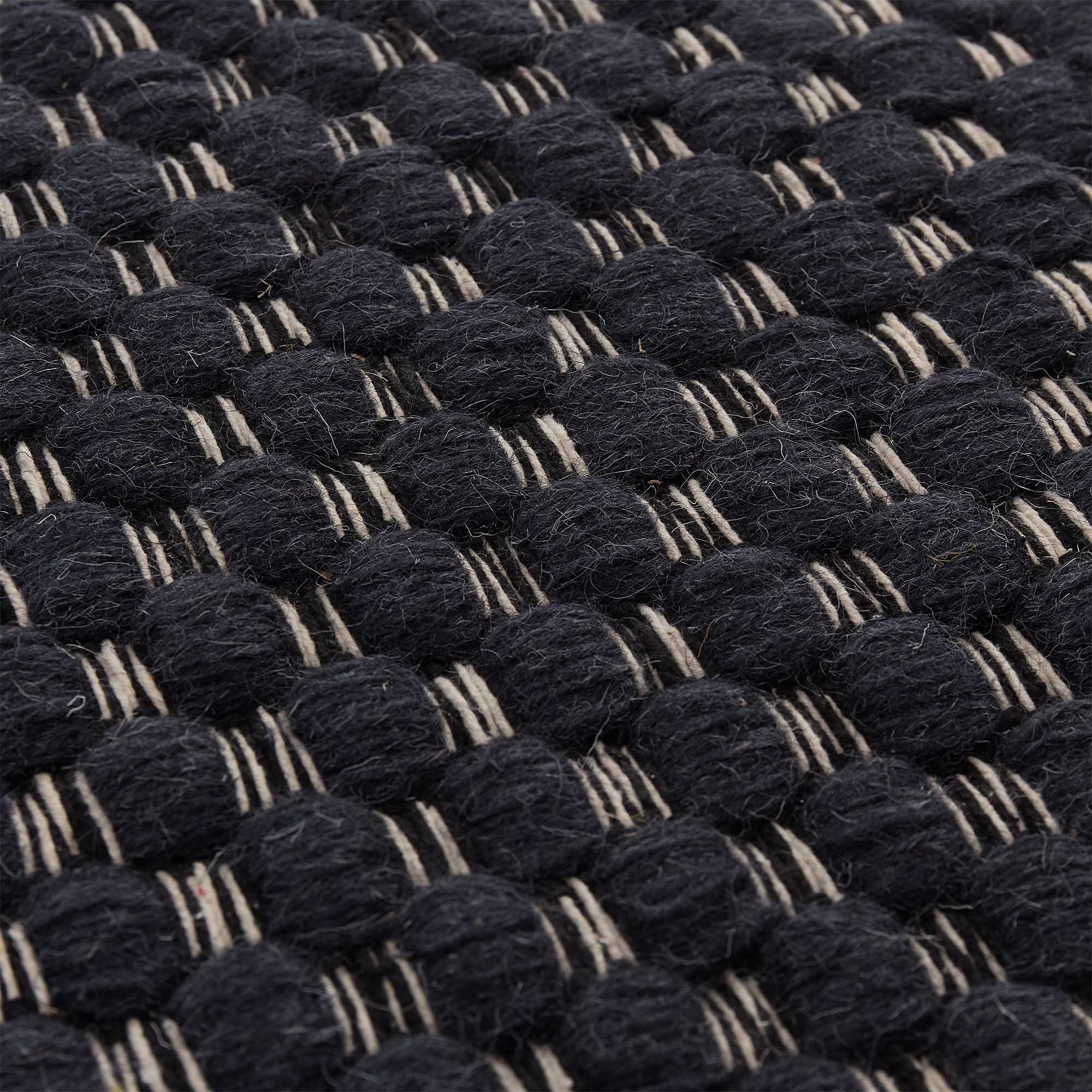 Unser Teppich Kalanka wird von unseren Partnern in Indien unter zertifizierten Arbeitsbedingungen und mit viel Liebe zum Detail in Handarbeit verwoben. Die Kettfäden bestehen aus bester Baumwolle, während für die Schussfäden 100% robuste Schurwolle verwendet wird. Ein besonders natürlicher Mix, der auch das minimalistische Design maßgeblich prägt. Durch die gewebten Schlingen erhält der Teppich eine grobe Struktur, die an große Kieselsteine erinnert. Kombiniert mit einer rutschfesten Unterlage bleibt der Teppich an Ort und Stelle.