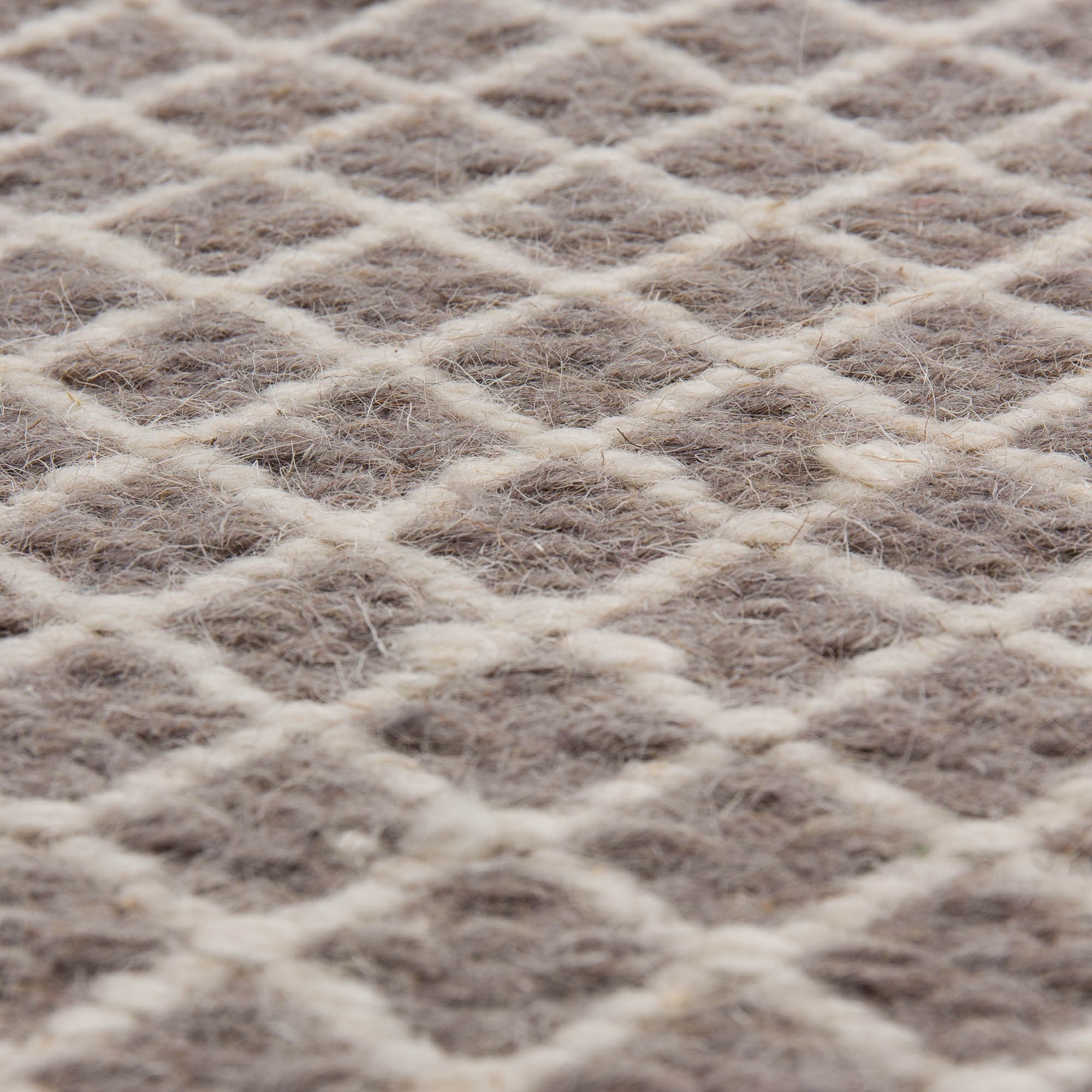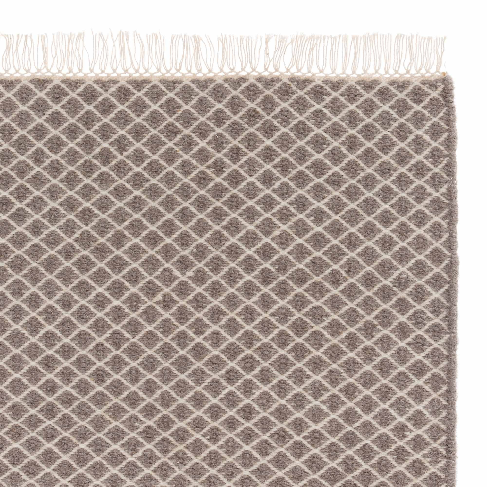 Für unsere Kollektion Loni wird ein Mix aus Wolle und Baumwolle von Hand in Leinwandbindung verwoben. Mit einem gespiegelten Diamantmuster auf Ober- und Unterseite schmückt Loni Ihre Böden nach Belieben in hellerer oder dunklerer Variante. Zarte Fransen an den Enden runden den zeitlosen Stil des Teppichs ab. In Kombination mit einer rutschfesten Unterlage bleibt der Teppich an Ort und Stelle.