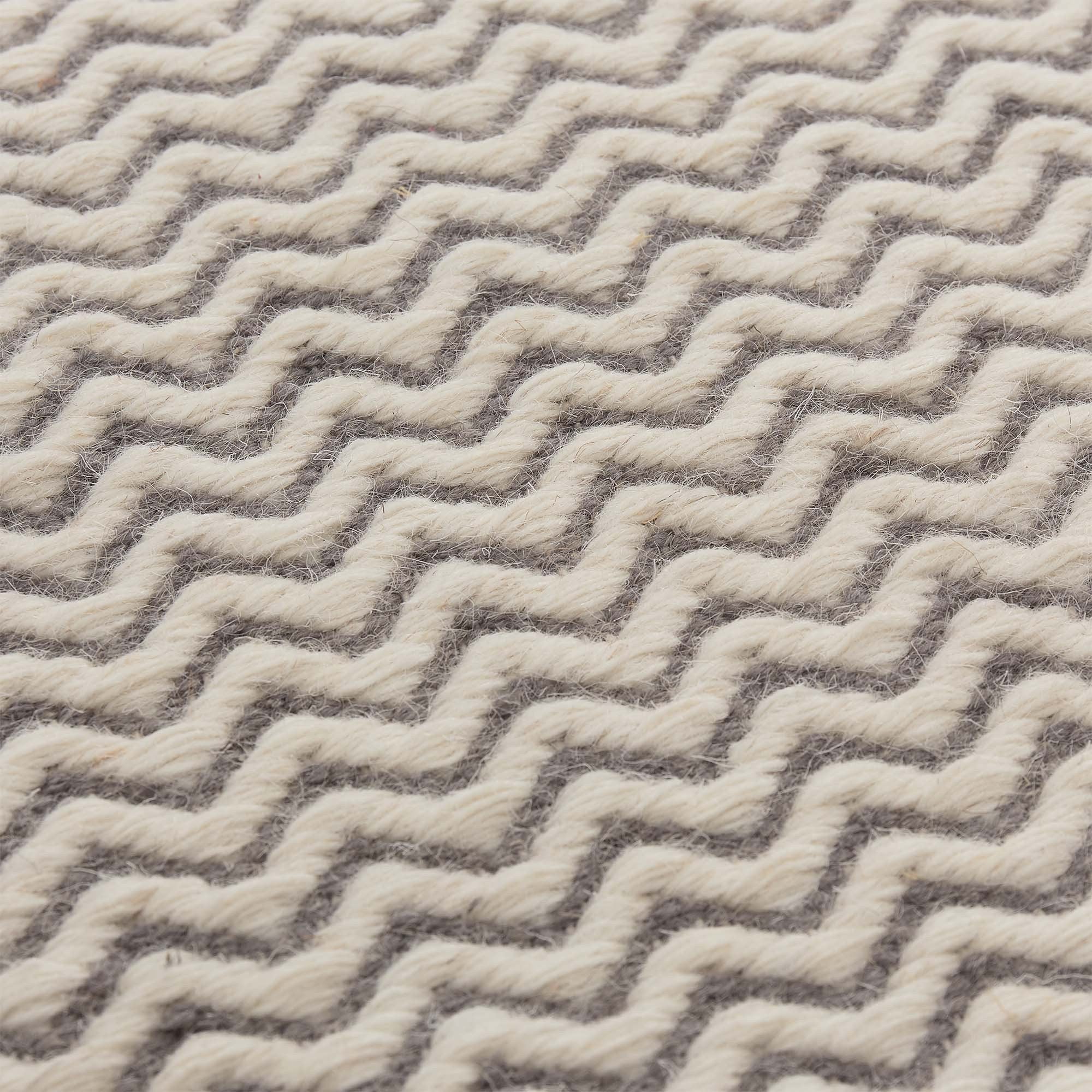Unsere Teppichkollektion Pandim wird aus 100% Schurwolle von Hand gewoben. Mit dem grafischen Zickzackmuster schaffen Sie einen skandinavischen Look in Ihrem Zuhause. Das schmale Zickzackdesign ist die aufregende Variante des ruhigeren Streifenmusters und bringt Bewegung und Dynamikl in den Raum. Kombiniert mit einer rutschfesten Unterlage bleibt der Teppich an Ort und Stelle.