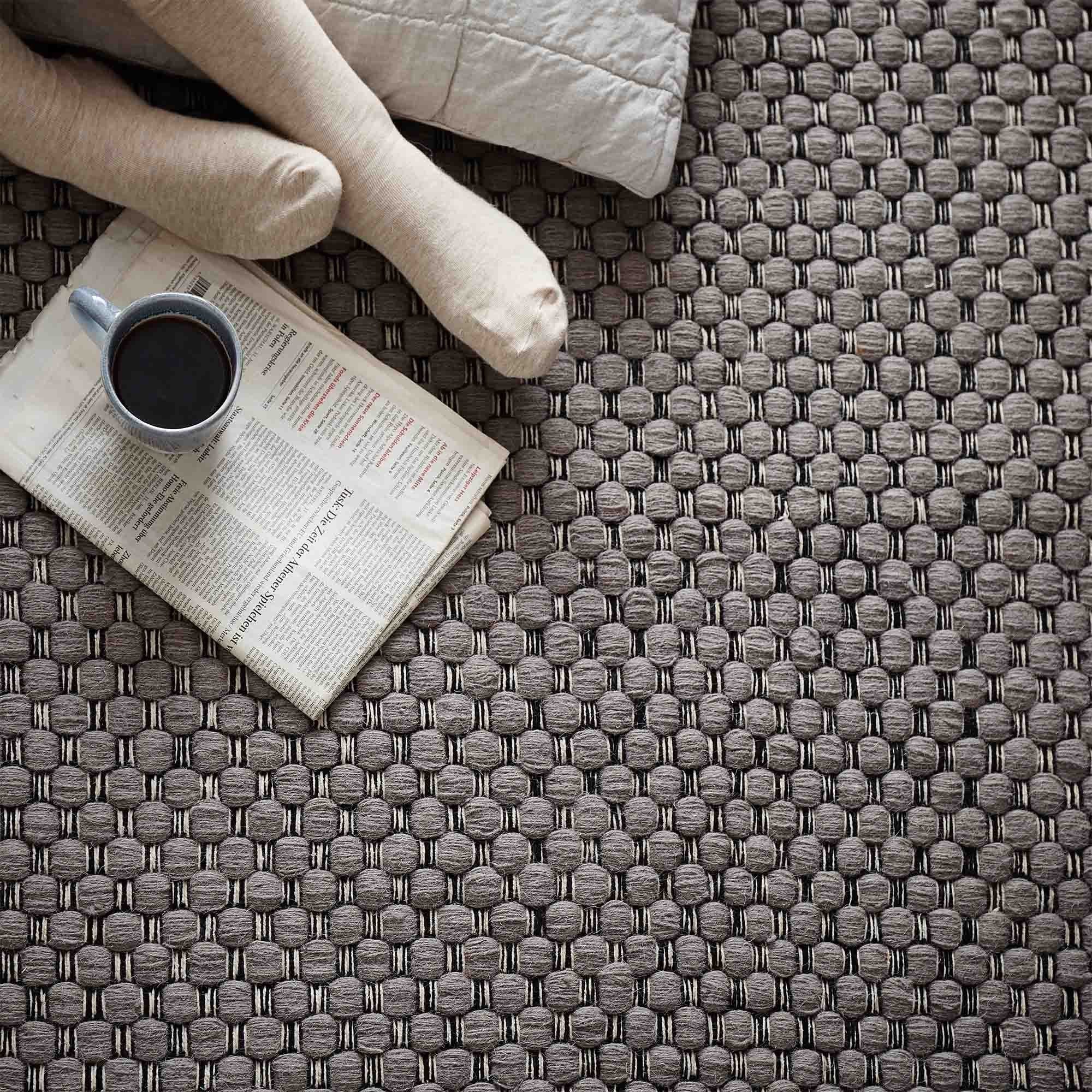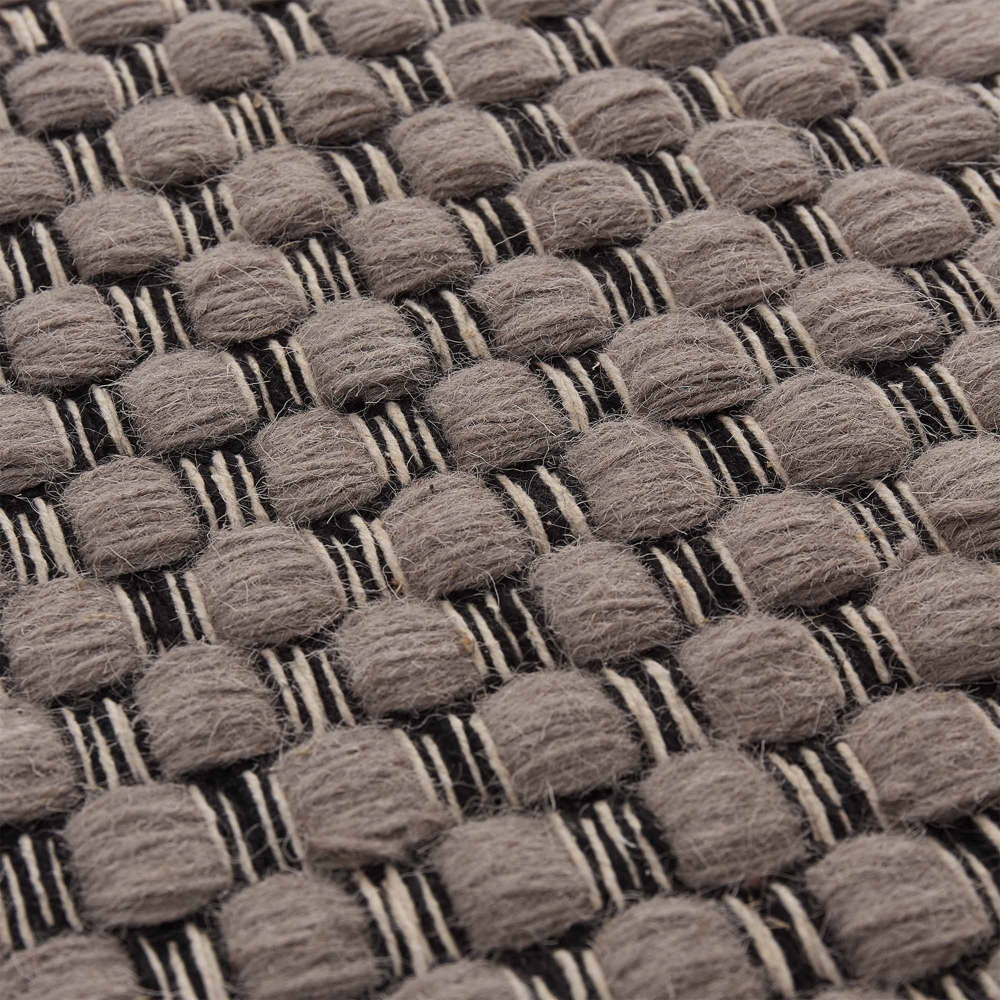 Unser Teppich Kalanka wird von unseren Partnern in Indien unter zertifizierten Arbeitsbedingungen und mit viel Liebe zum Detail in Handarbeit verwoben. Die Kettfäden bestehen aus bester Baumwolle, während für die Schussfäden 100% robuste Schurwolle verwendet wird. Ein besonders natürlicher Mix, der auch das minimalistische Design maßgeblich prägt. Durch die gewebten Schlingen erhält der Teppich eine grobe Struktur, die an große Kieselsteine erinnert. Kombiniert mit einer rutschfesten Unterlage bleibt der Teppich an Ort und Stelle.
