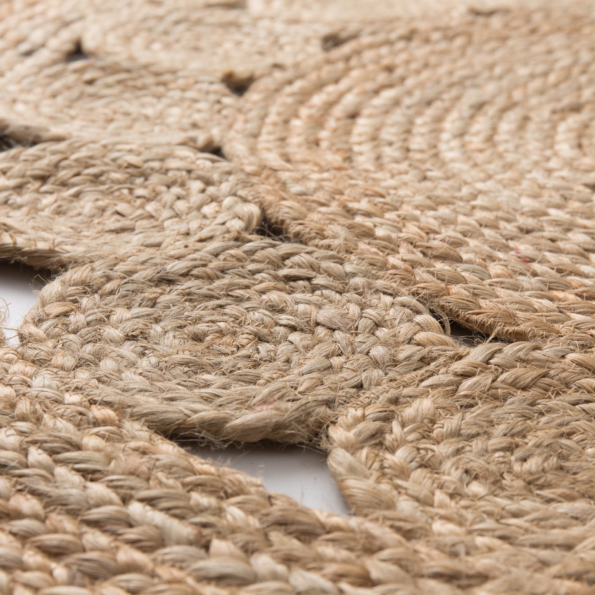 Unser Teppich Asele verbindet höchste Qualität mit sommerlich leichtem Design. Aus 100% Jute von Hand in Leinwandbindung gefertigt ist der runde Teppich eine schöne Ergänzung für einen natürlichen Look in Wohnräumen, auf Balkon oder Terrasse. Das aufwendig eingearbeitete Kreismuster sorgt für einen charmanten Akzent, der zarte Farben und erfrischende Leichtigkeit in Ihr Zuhause bringt.