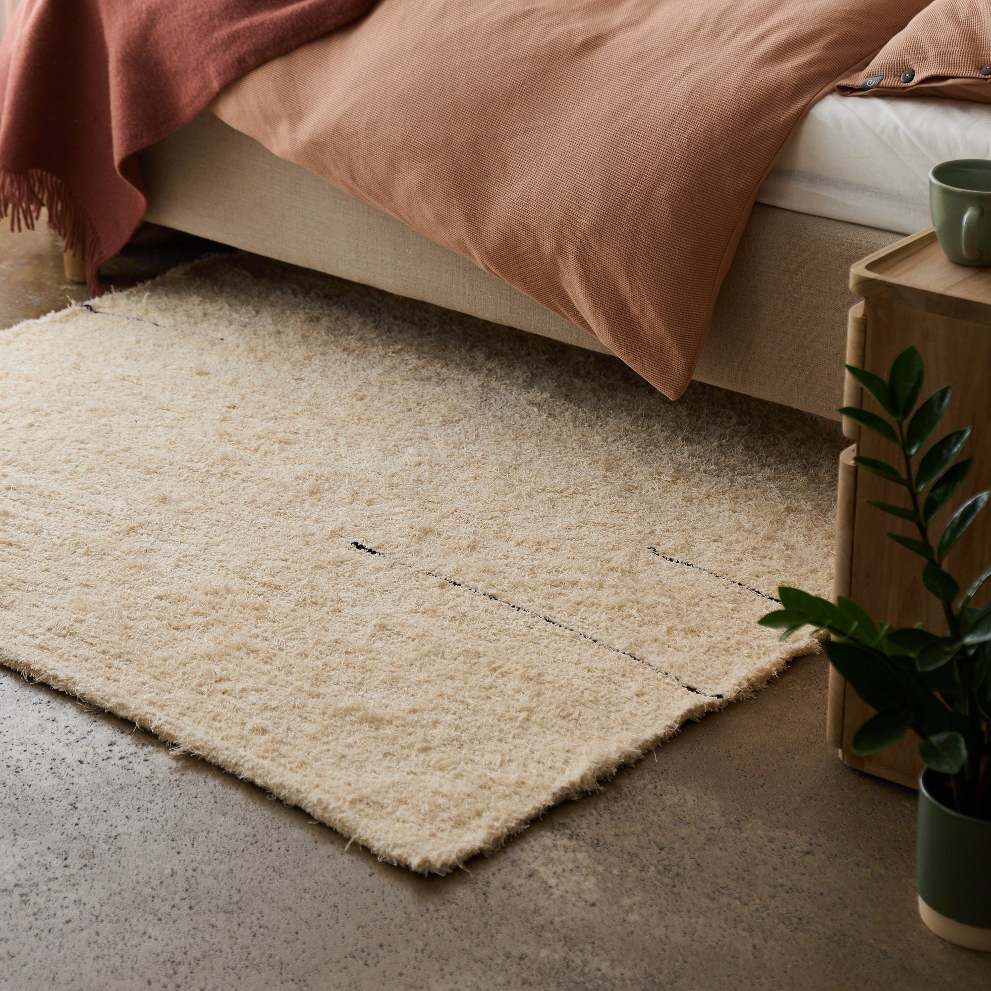 Zeitlos trifft es nicht ganz. Unser Teppich Tavoro hat Vergangenheit: Garn- und Gewebereste, die die Textilindustrie nicht zu nutzen wusste. Tavoro hat aber auch Zukunft – weil er die traditionelle Teppichknüpfkunst unterstützt, dank der unsere Partner:innen in Portugal Ungenutztem neues Leben schenken. Wie von Hand gezeichnete Linien verlaufen über die angenehm strukturierte Oberfläche und verleihen der Optik organische Akzente. Die Baumwolle ist traumhaft weich und beweist, dass sie alles andere als ausgedient, sondern als Bodenschatz ganz, ganz viel Gegenwart hat.