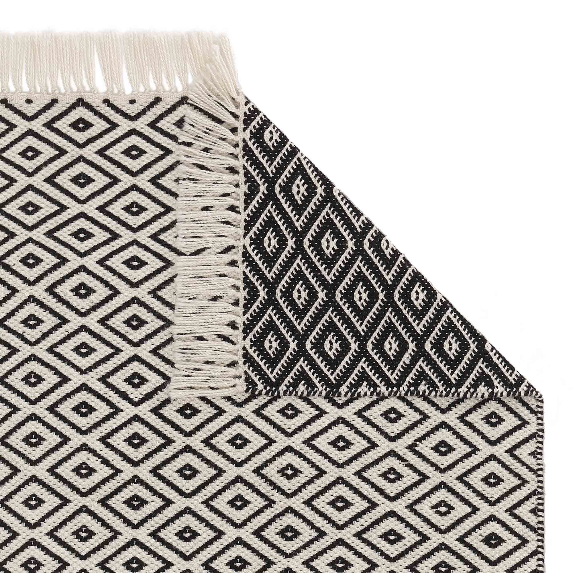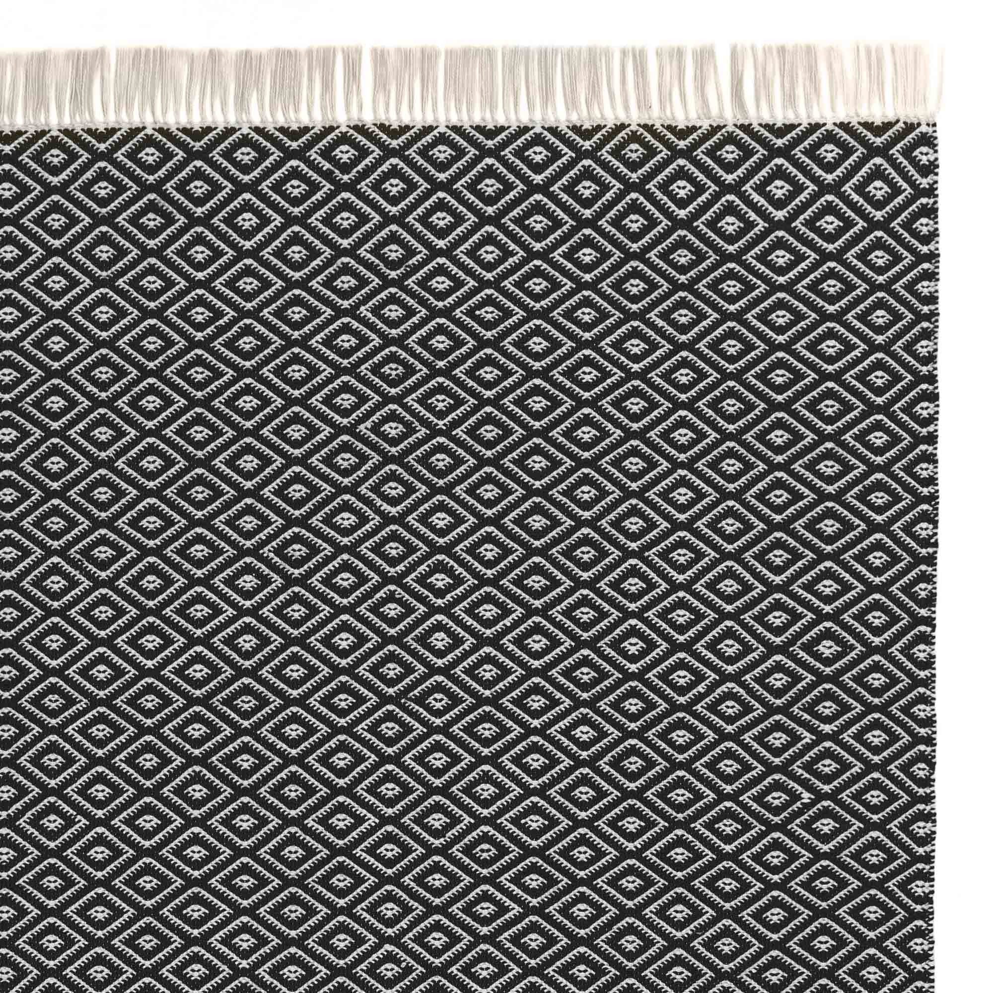 Für unsere Kollektion Barota werden PET-Flaschen aus Polypropylen auf umweltfreundliche Weise wiederverwertet: Sie werden gesäubert, zerkleinert, geschmolzen und zu Garn versponnen. Dieses verwebt unser Hersteller in Indien zu langlebigen Teppichen für den In-und Outdoorbereich, die sich fast so weich wie Wolle anfühlen. Dank des wasserabweisenden Garns trocknet Barota schnell und ist ausgesprochen leicht zu reinigen. Das zeitlose Diamantmuster mit Fransen ist wendbar, sodass Sie sich nach Belieben für eine der beiden Seiten entscheiden können. Mit der Zeit kann sich die Farbgebung durch starke Sonneneinstrahlung leicht verändern.