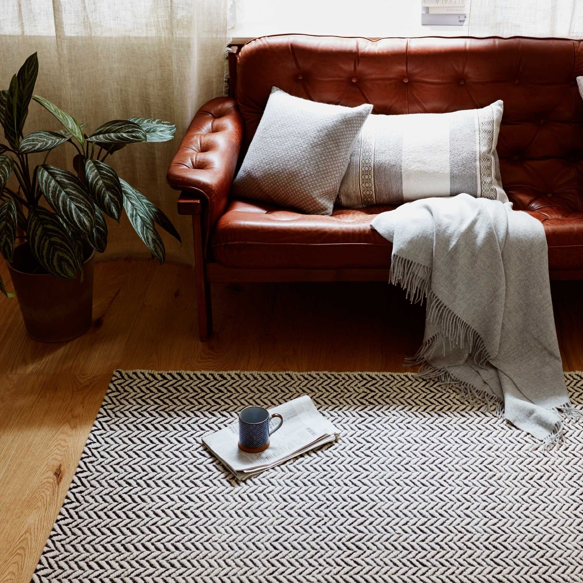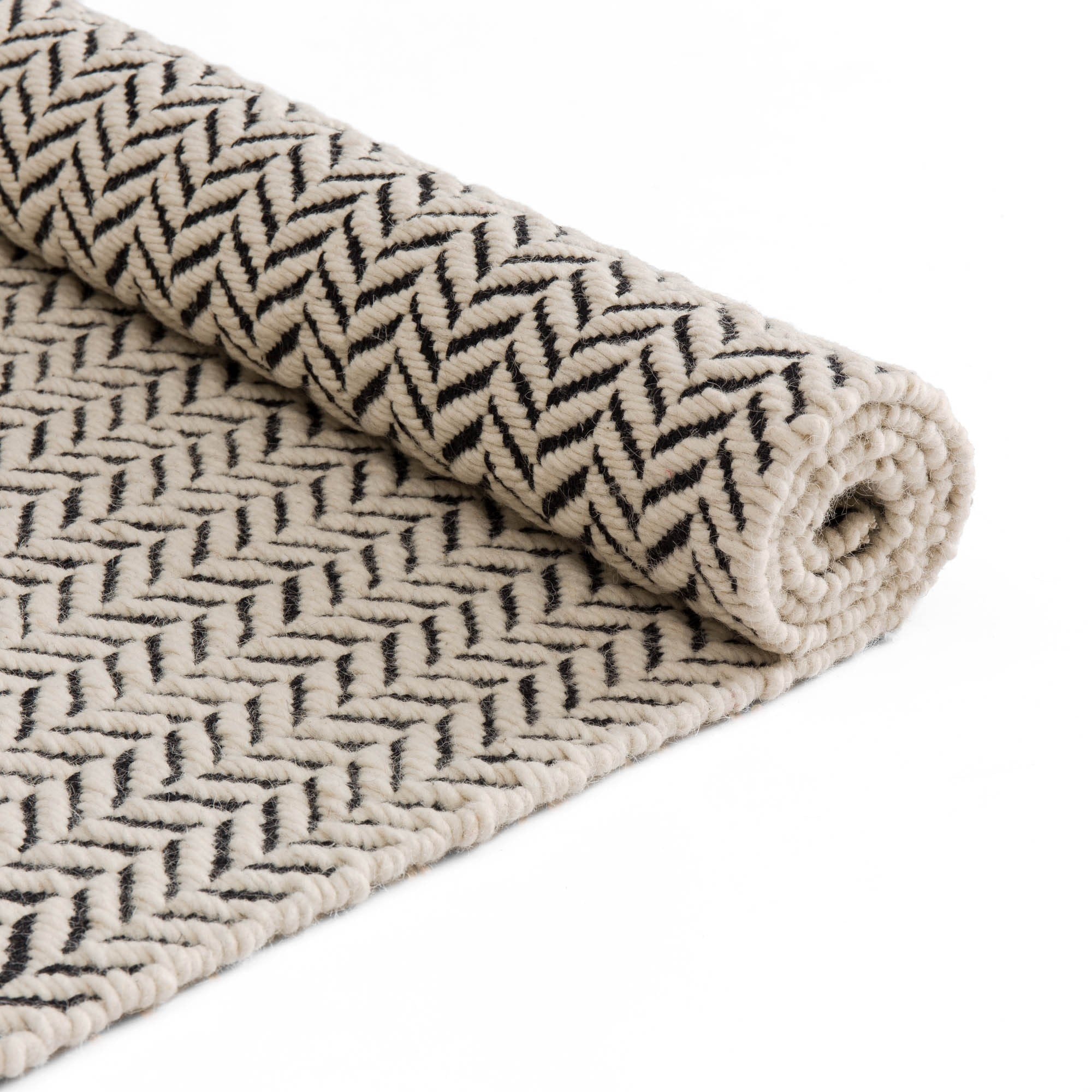 Mit klassischer Eleganz und fairer Produktion schmeichelt unser Teppich Kolvra Augen und Gewissen gleichermaßen. Reine Schurwolle und weiche Baumwolle werden von Hand und unter Berücksichtigung der CARE & FAIR Standards in Twillbindung zu einem modernen Wohntextil verwoben, das durch farblich kontrastierendes Fischgratmuster und klaren skandinavischen Stil besticht. Kombiniert mit einer rutschfesten Unterlage bleibt der Teppich an Ort und Stelle.