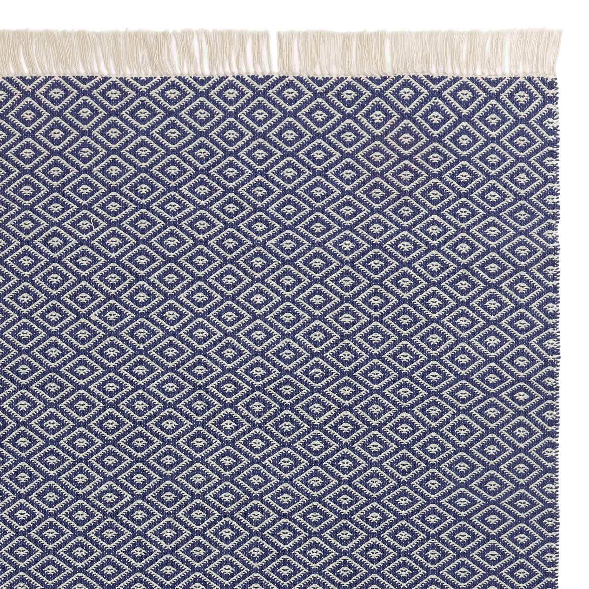 Für unsere Kollektion Barota werden PET-Flaschen aus Polypropylen auf umweltfreundliche Weise wiederverwertet: Sie werden gesäubert, zerkleinert, geschmolzen und zu Garn versponnen. Dieses verwebt unser Hersteller in Indien zu langlebigen Teppichen für den In-und Outdoorbereich, die sich fast so weich wie Wolle anfühlen. Dank des wasserabweisenden Garns trocknet Barota schnell und ist ausgesprochen leicht zu reinigen. Das zeitlose Diamantmuster mit Fransen ist wendbar, sodass Sie sich nach Belieben für eine der beiden Seiten entscheiden können. Mit der Zeit kann sich die Farbgebung durch starke Sonneneinstrahlung leicht verändern.