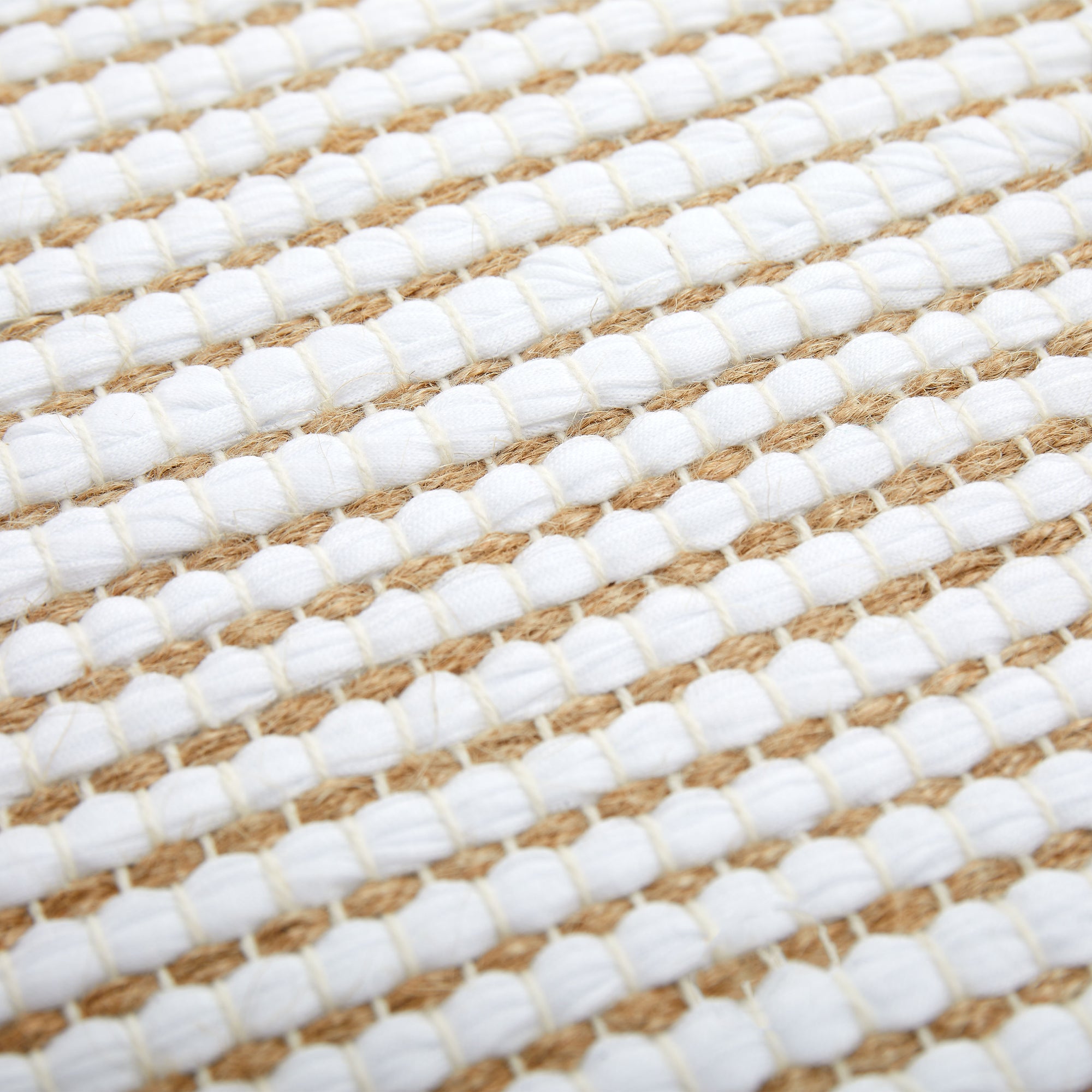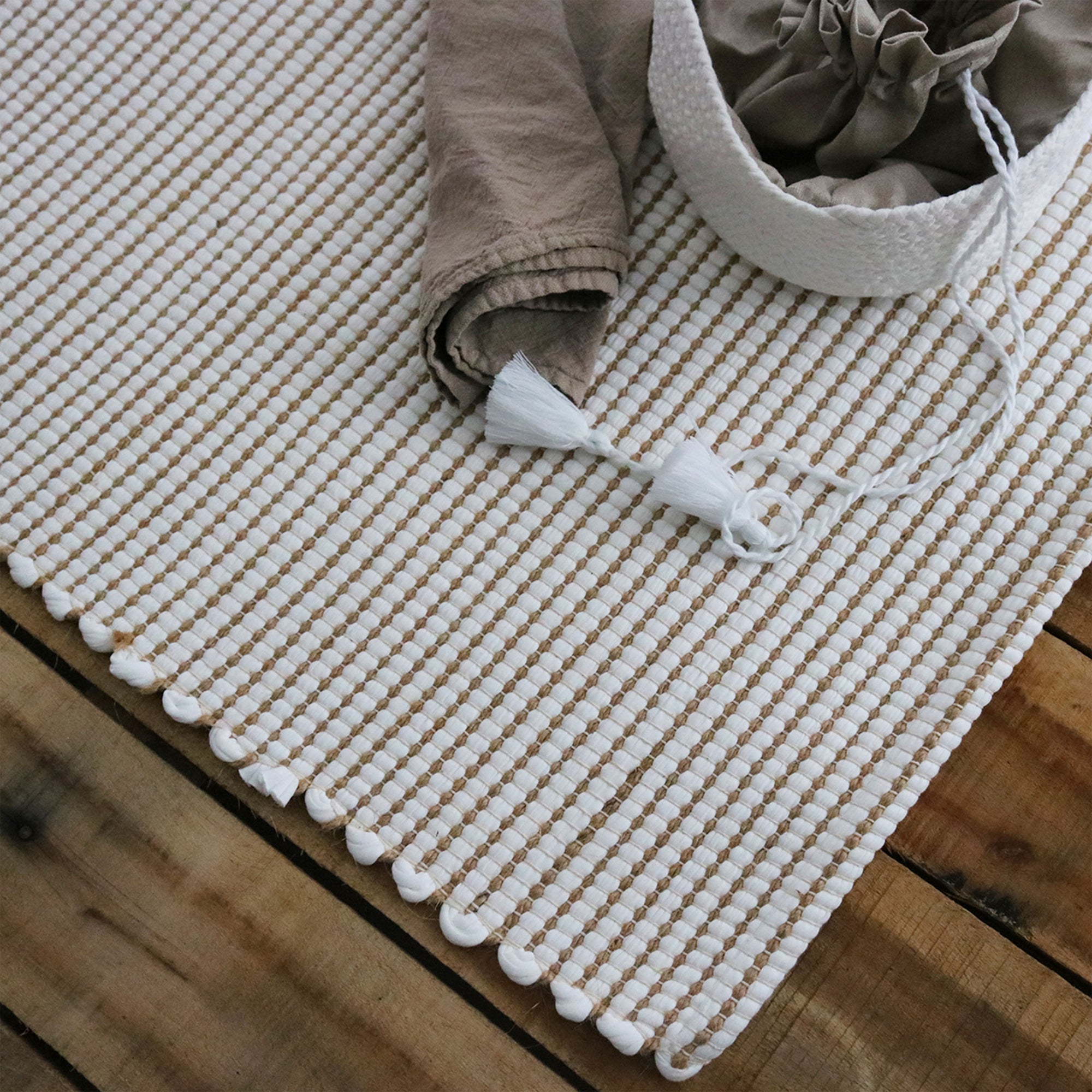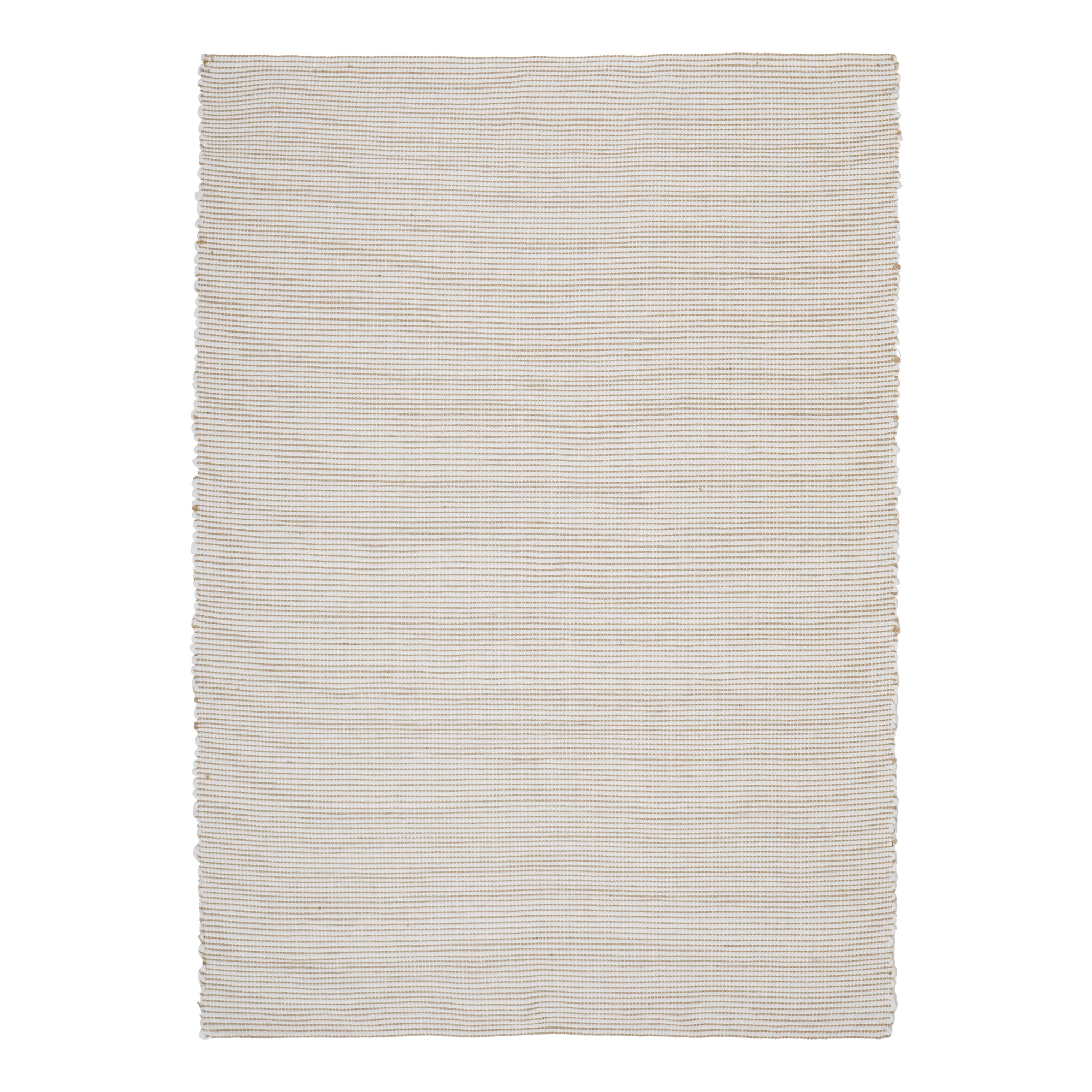 Auf den ersten Blick ist Tomino klassische Geometrie. Die geometrischen Linien reihen sich zu einer quadratischen Webstruktur aneinander und sorgen sowohl auf Parkett als auch Fliesen für einen charmanten Kontrast. Doch erst ein Blick hinter die Kulissen verrät, dass für den Teppich ganz unklassisch umgedacht wurde. Rohstoff für den Bodenschatz bildet nämlich ein Mix aus Fasern, für die die Textilindustrie leider keinen praktischen Nutzen mehr sah. Hinzu kommt dann noch (neue) Jute, um den Mix noch etwas schöner zu machen. Da fehlt nur noch eine lange Tradition der Handwerkskunst, um aus Ungenutztem echtes Upcycling zu schaffen.