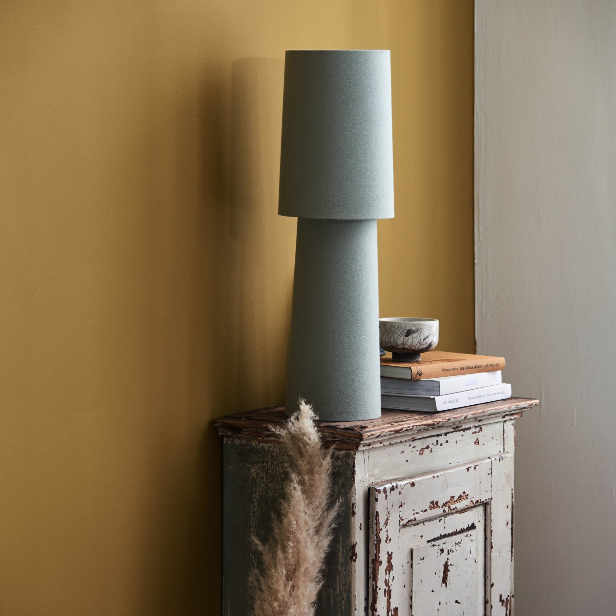 Unsere Tischlampe Kollur verleiht Ihrem Zuhause verspielte Retro-Akzente und einen besonderen Farbklecks. Die einzigartige Stoffverkleidung und deren Farbgebung sorgen für ein sehr warmes, sanftes Licht. Das konische Design erinnert an den geradlinigen Stil der 60er Jahre und fungiert doch als zeitloser Blickfang auf Ihrem Schreibtisch oder Ihrer Kommode.