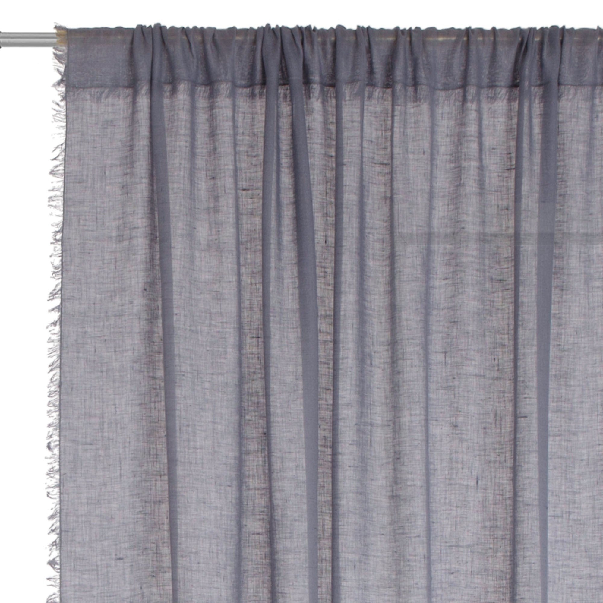 Für unseren stilvollen Vorhang Kiruna wird 100% Leinen in hochwertiger Leinwandbindung verarbeitet. Der semi-transparente Stoff lässt das Licht leicht in Ihr Zuhause hineinscheinen und schenkt Ihnen ein angenehmes Wohlfühlambiente. Das schlichte Design wird mit dekorativen Fransen am Rand verfeinert und ein Tunnelzug dient zur Aufhängung.