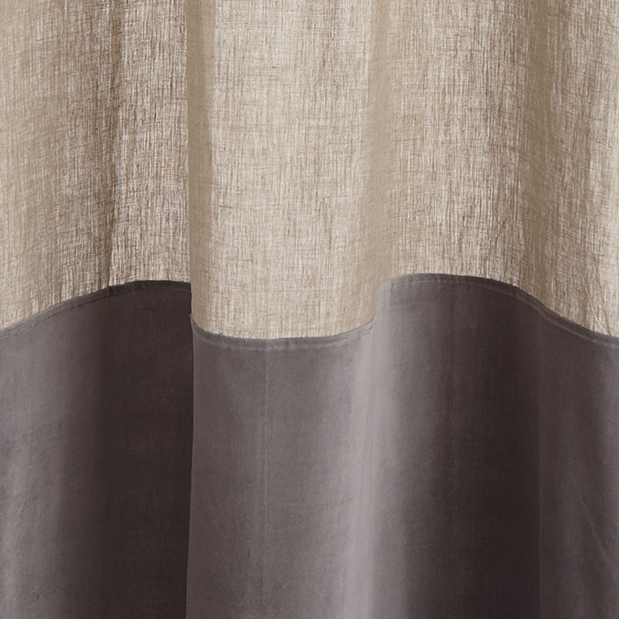 Edle Geschmeidigkeit und Naturbelassenheit treffen bei unserem Vorhang Saveli aufeinander und umrahmen jedes Fenster mit Stil. Während der obere Teil des Vorhangs aus Leinen besteht, wurde der untere, farbige Teil aus Baumwollsamt gefertigt und strukturiert die Raumhöhe Ihres Zimmers. Ein modernes Design, das zwischen Minimalistik, Colour-Blocking und Geometrie changiert.