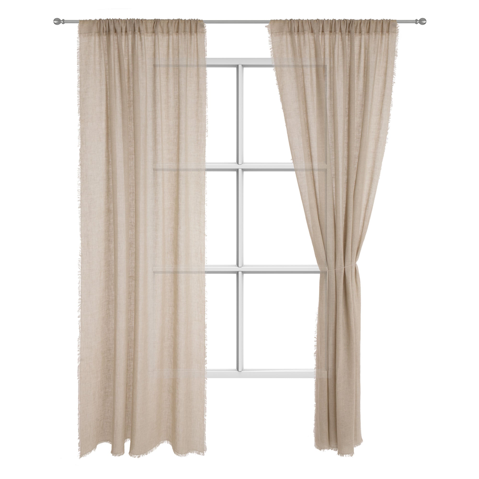 Für unseren stilvollen Vorhang Kiruna wird 100% Leinen in hochwertiger Leinwandbindung verarbeitet. Der semi-transparente Stoff lässt das Licht leicht in Ihr Zuhause hineinscheinen und schenkt Ihnen ein angenehmes Wohlfühlambiente. Das schlichte Design wird mit dekorativen Fransen am Rand verfeinert und ein Tunnelzug dient zur Aufhängung.