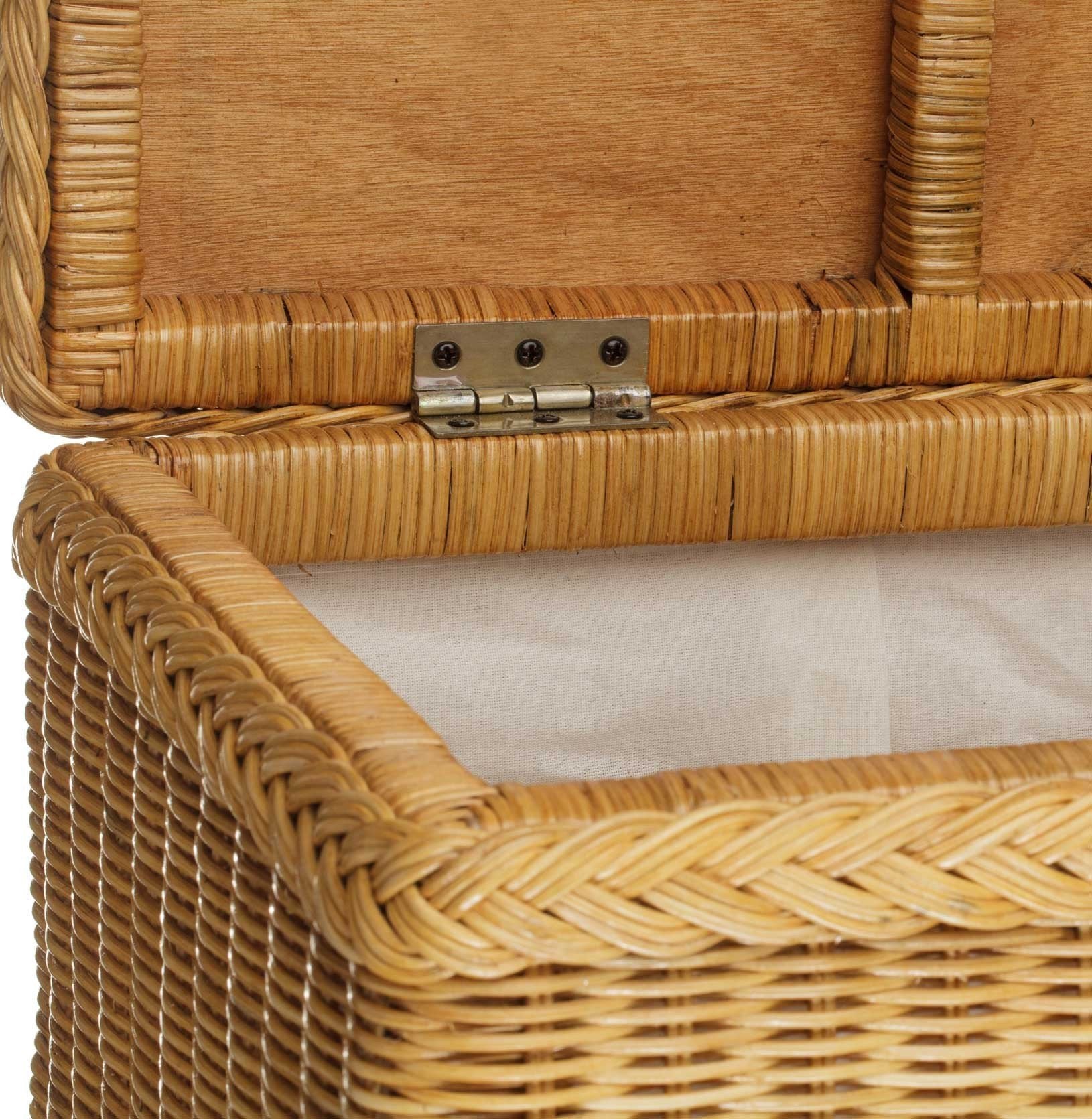 Für unseren stilvollen Bettkasten Java wird hochwertiger Rattan von unseren Partnern aus Indonesien traditionell per Hand geflochten und mit einem herausnehmbaren Baumwoll-Inlett ausgekleidet. Schuhe, Bettdecken und saisonal nicht benötigte Kleidung können so staubfrei und in natürlichen Materialien bis zum nächsten Gebrauch aufbewahrt werden.