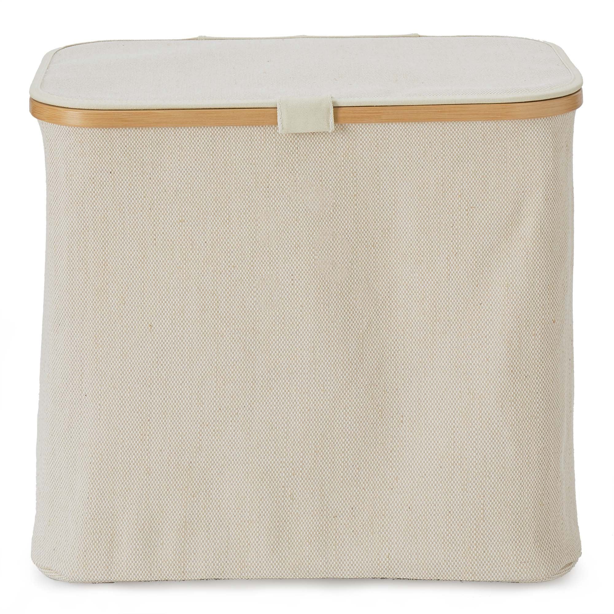 Aus einem robusten Leinen-Baumwoll-Mix in Leinwandbindung verwoben, begeistert unser Aufbewahrungskorb Champa mit natürlichem Aussehen. Ein Rahmen aus Bambus gibt den nötigen Halt. Der puristische Stil passt in jedes Zuhause, ganz gleich ob Schlaf-, Wohn- oder Kinderzimmer.