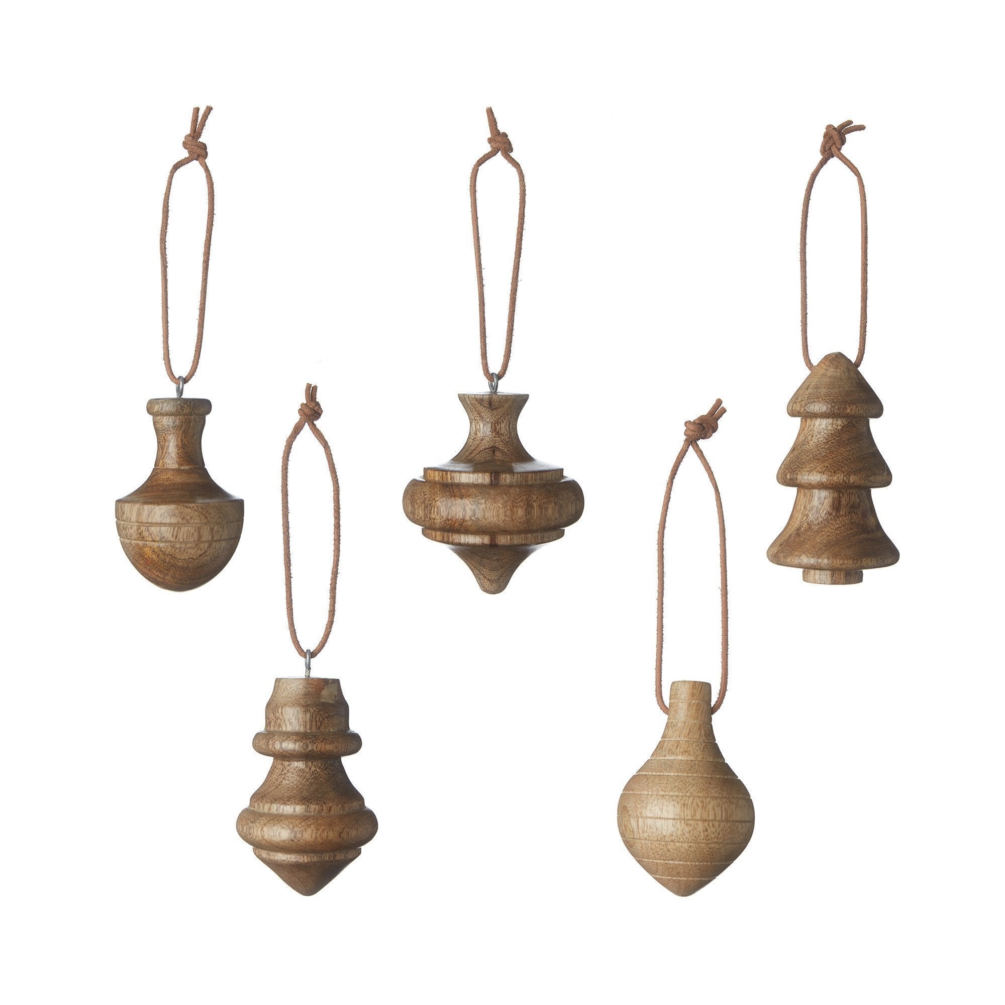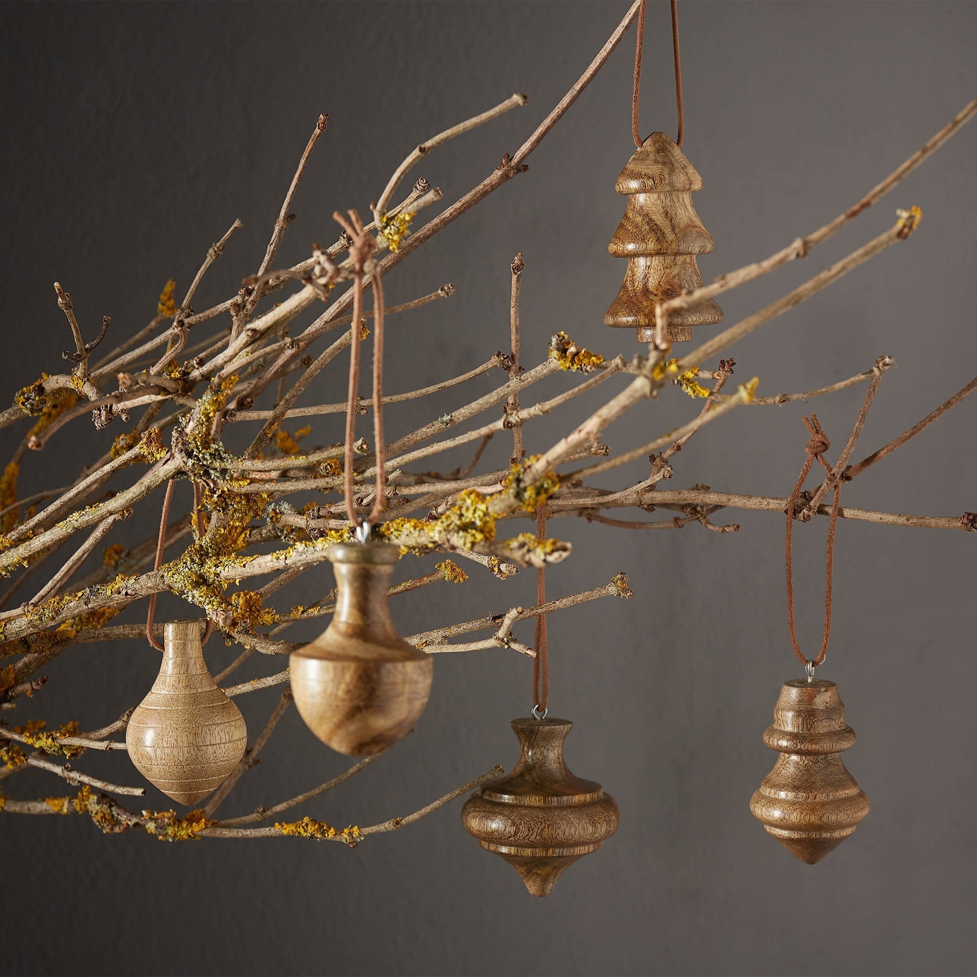 Diesen eleganten Formen kann man sich kaum verwehren: Nachhaltig angebautes Mangoholz wird für unsere Weihnachtsdekoration Ghadara in klassischen Konturen verarbeitet. Die natürlich gewachsene Maserung strahlt durch die geölte Holzoberfläche hindurch und macht jedes der fünf Ornamente im Set zu einem Einzelstück. Der harmonische Scandi-Stil schenkt Ihnen weihnachtliche Gemütlichkeit für Ihr Zuhause – ob am Baum oder auf der Festtafel.